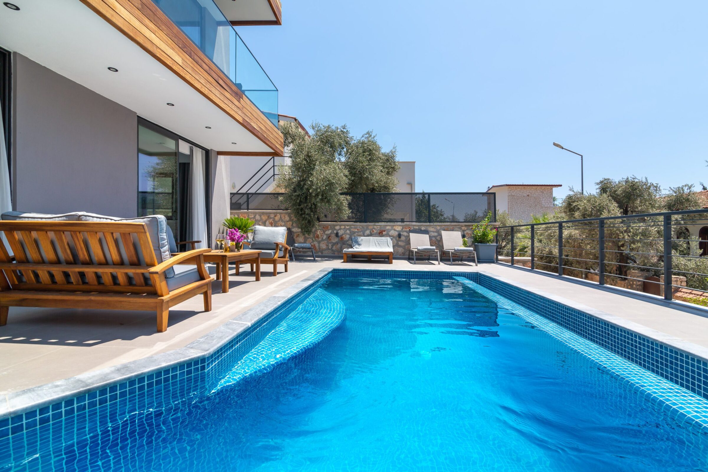 Just moments from the water in the Kalamar Bay area of Kalkan, Bay Life is a contemporary three-bedroom villa with a private pool (7.1m x 2.4 x 1.6 depth), generous outdoor space, and stunning sea views. This property is perfect for families or couples looking for a luxury holiday to Kalkan, Turkey.