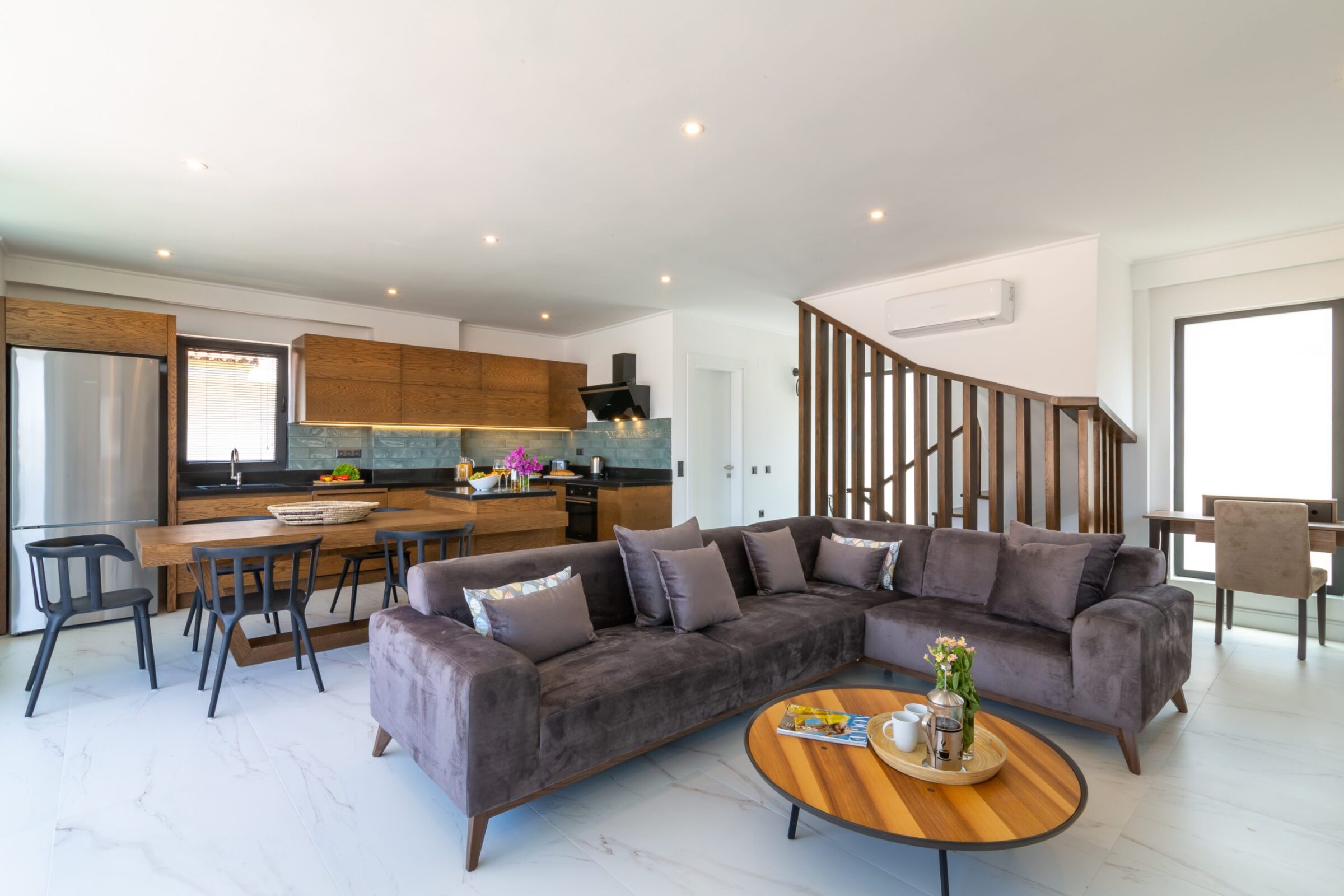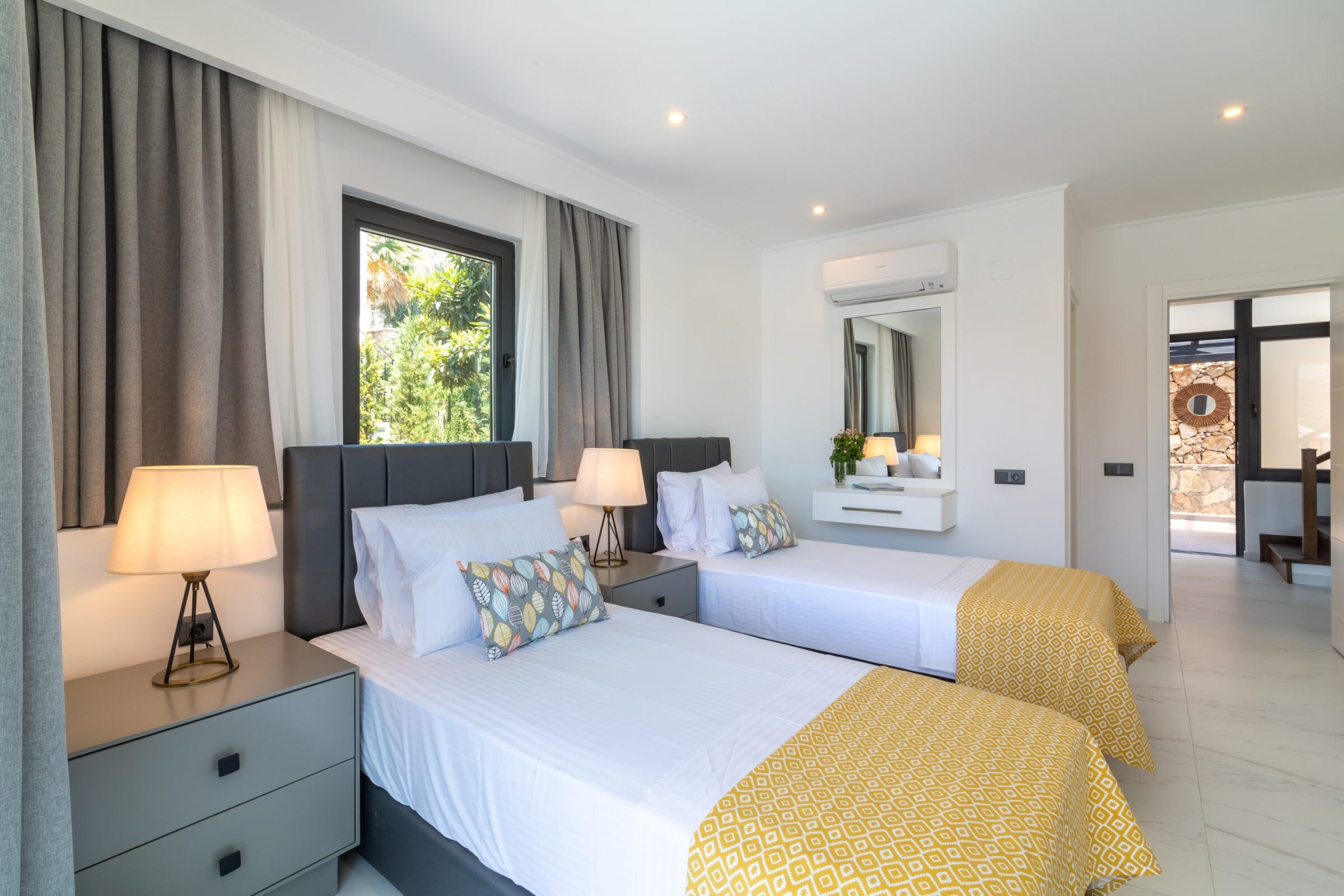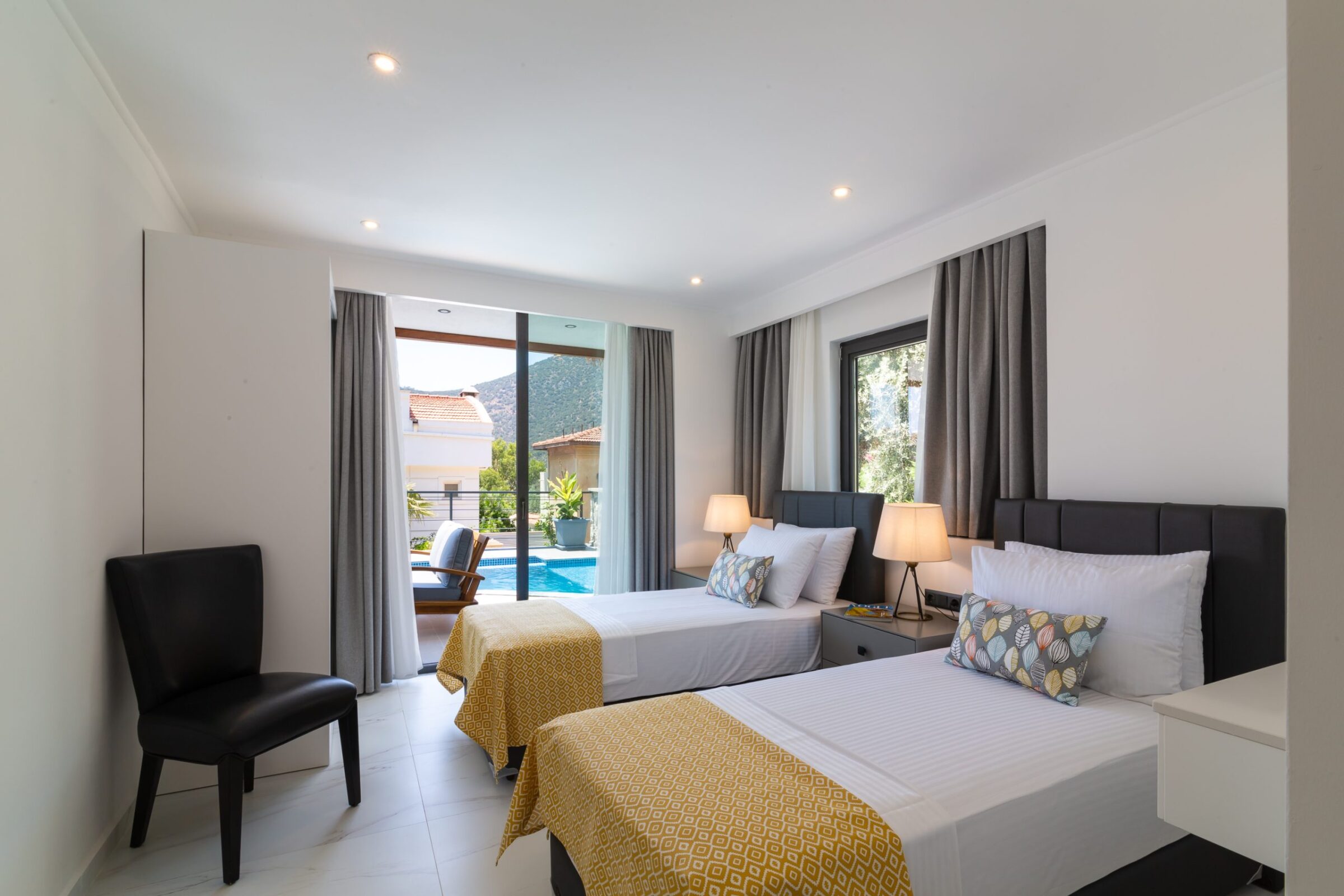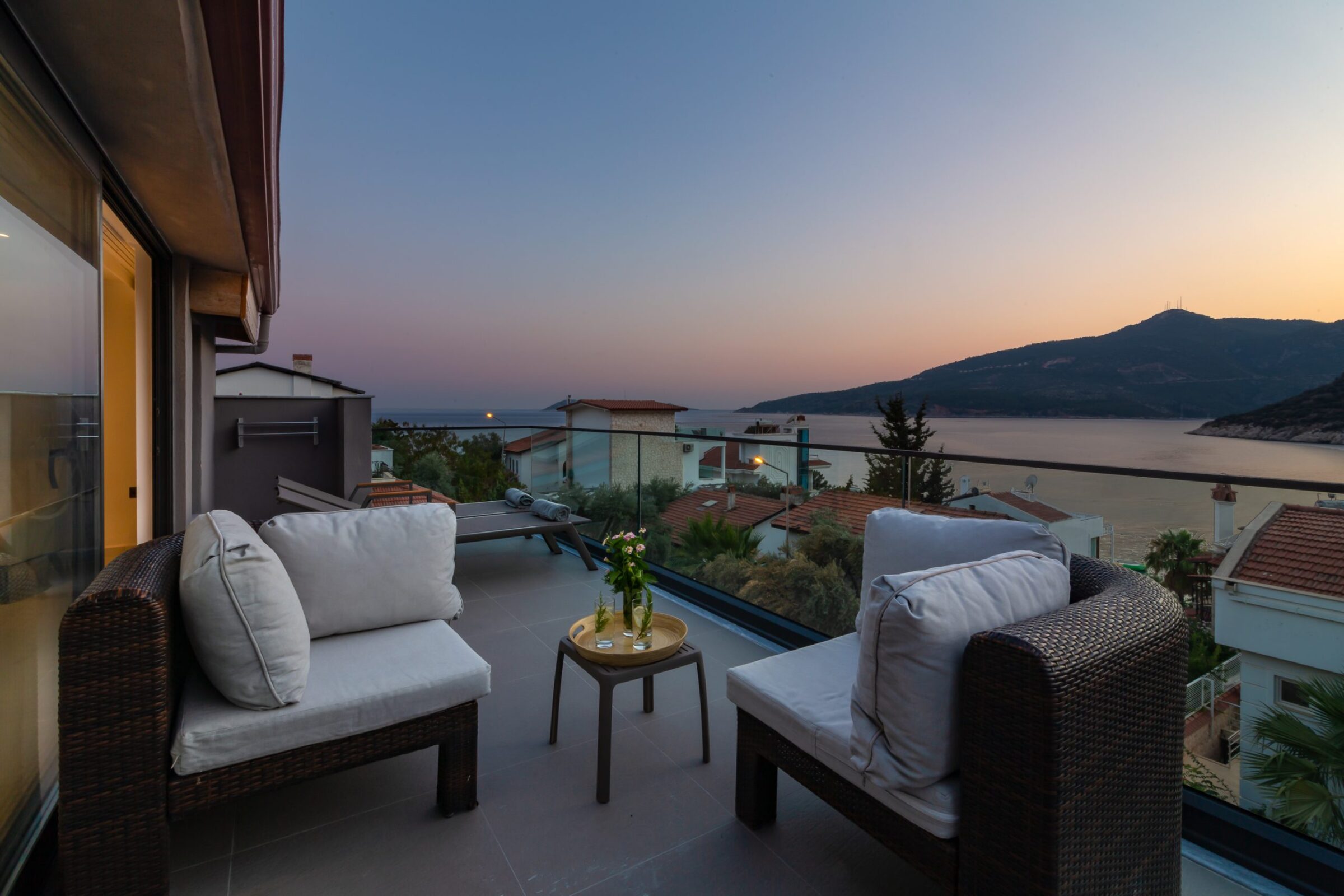 This modern Kalkan villa spans three floors and comfortably sleeps up to 6 guests.
