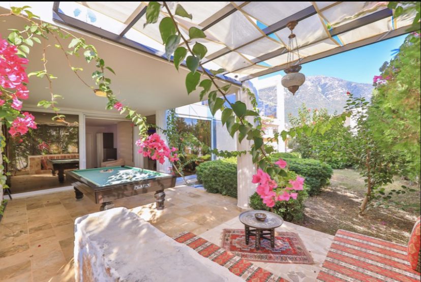 Outside terrace has a pool table and table tennis and a lovely Ottaman style seated area under a pergola