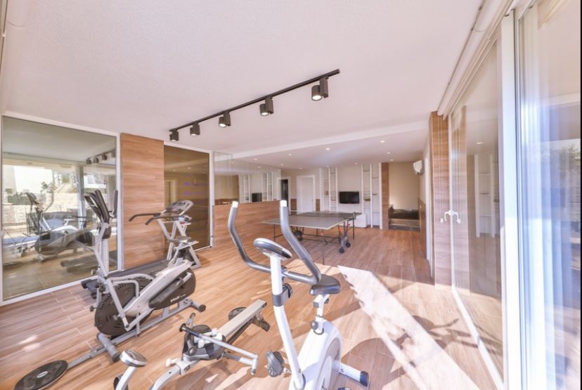 - Gym with treadmill, cross trainer and other fitness equipment