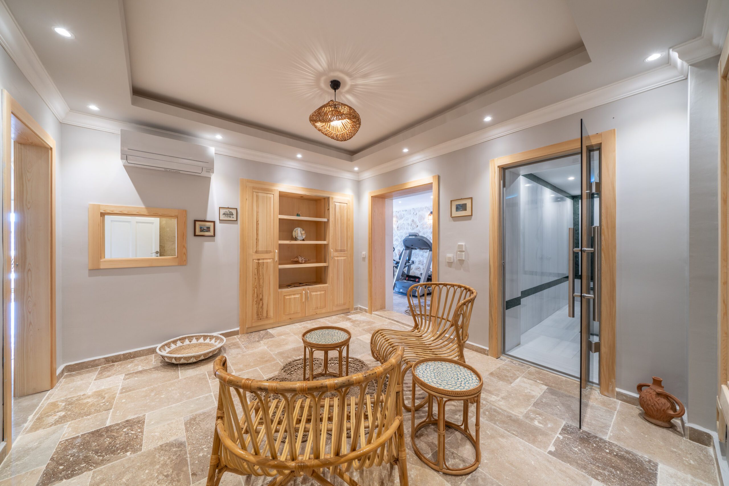 Villa Aqua Verde provides an array of additional amenities on its lower ground floor to enrich guests’ holiday experience. This area boasts a fully equipped gym complete with a treadmill, exercise bike, and step machine.