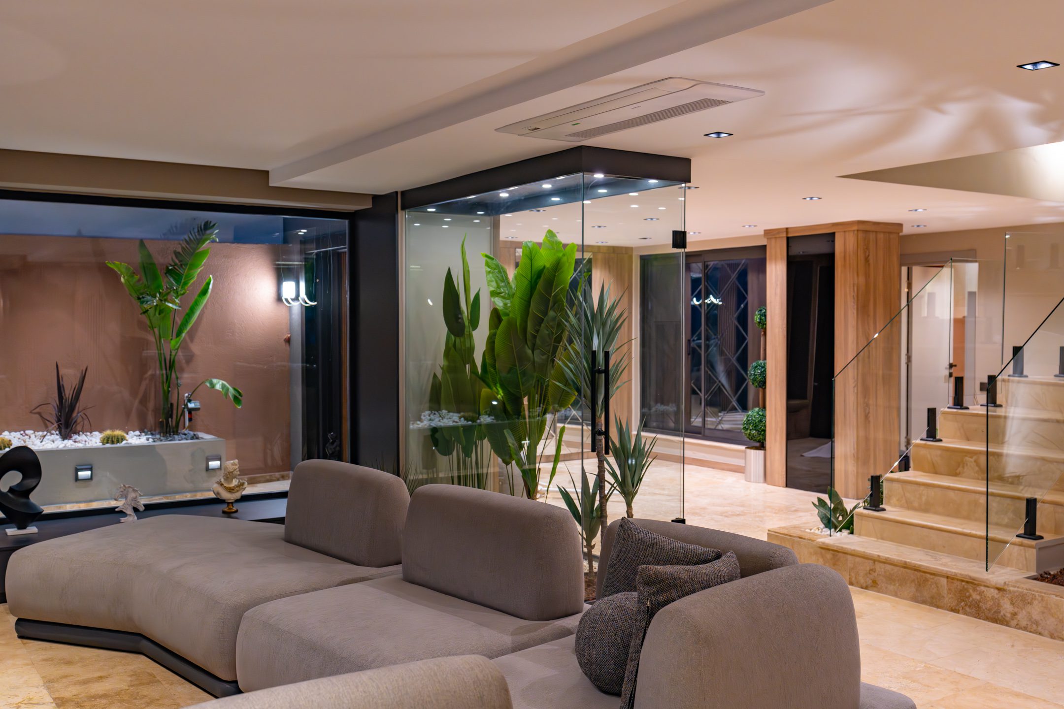 The interiors of Villa Buse are light, modern and elegant, with open-plan spaces designed for comfort and sociable living. Large windows and sliding doors throughout the villa ensure the sea views are in sight from almost every corner of the property, creating a seamless connection between indoor and outdoor living.