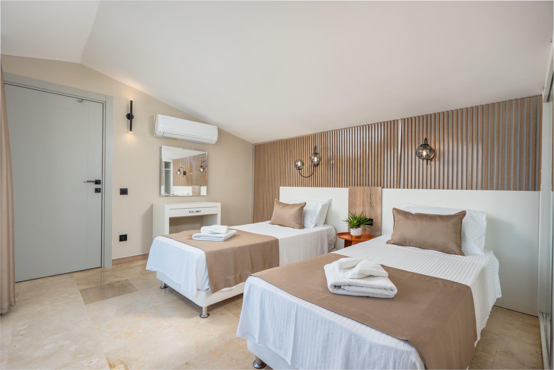 The villa’s six bedrooms are newly renovated and all en-suite, offering a comfortable and stylish stay for each guest. Several rooms enjoy private balconies with elevated views over Kalkan Bay, perfect for a peaceful morning coffee or evening glass of wine.