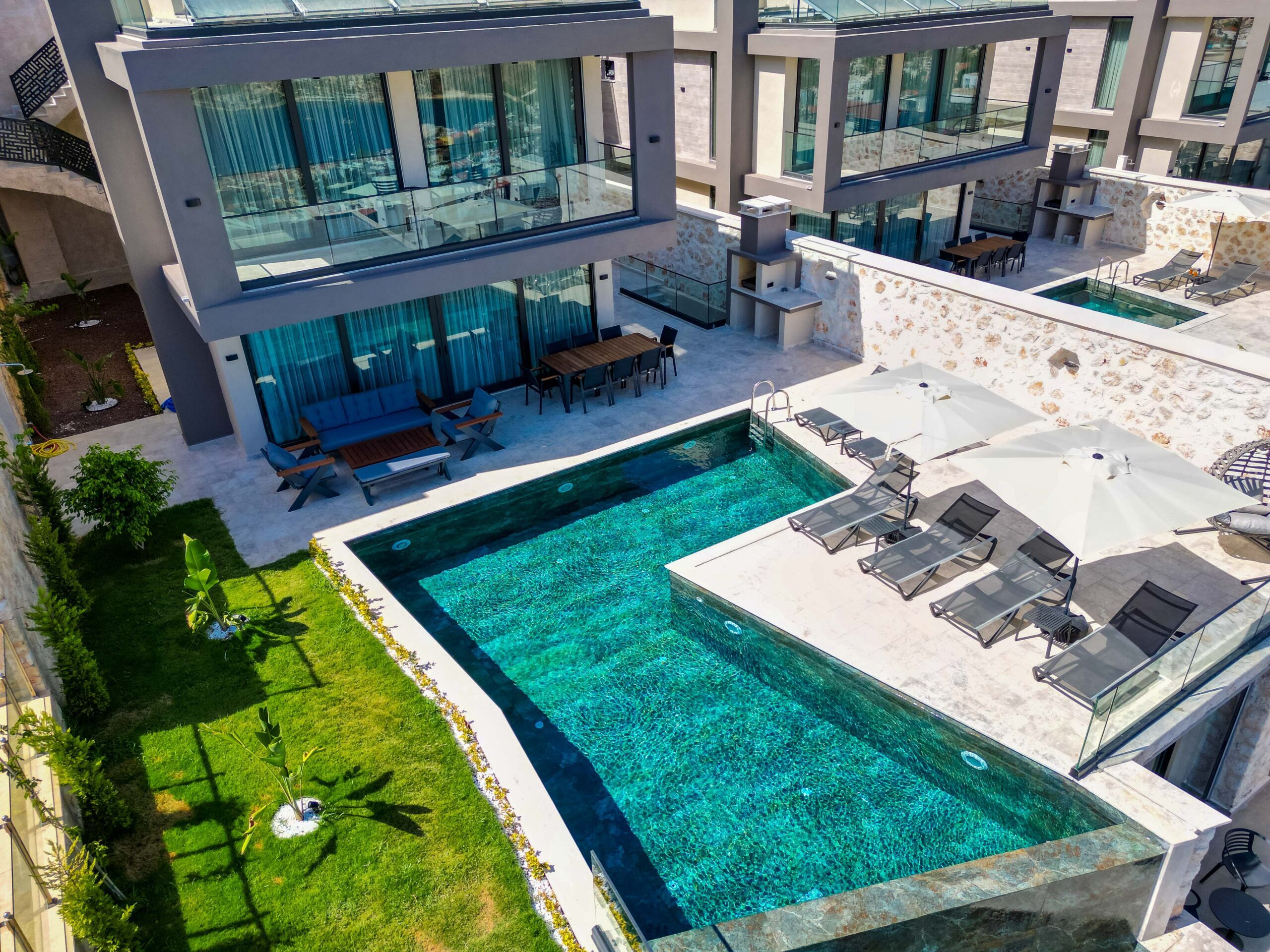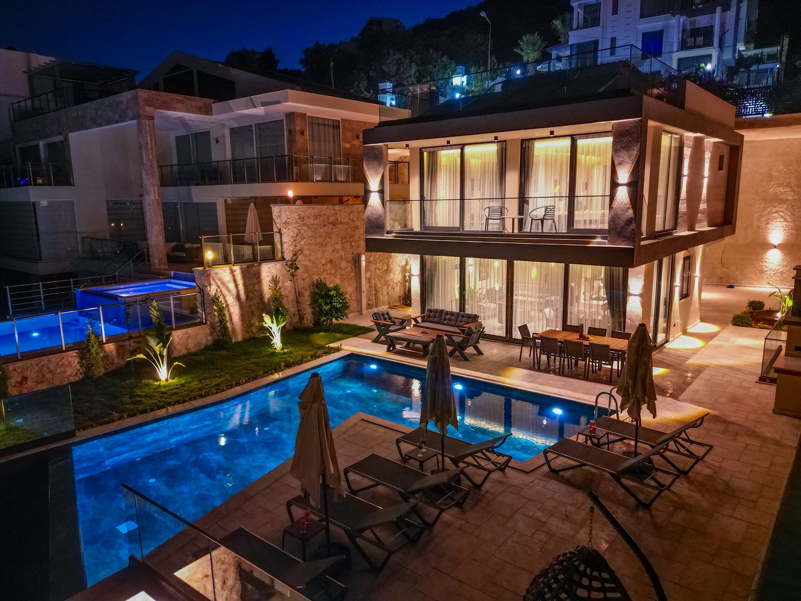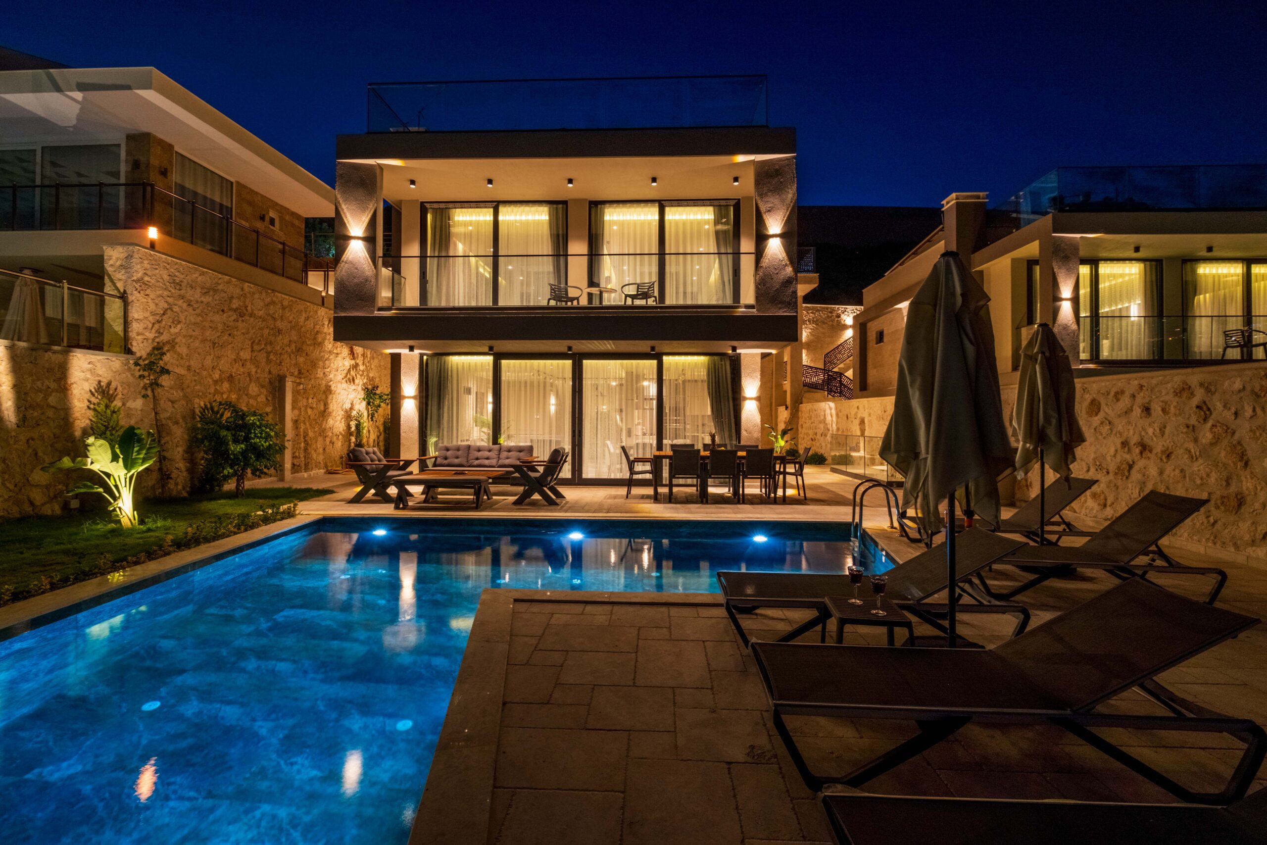 Villa Casa Sirius is a stylish and contemporary three-bedroom retreat offering an exceptional blend of comfort, space and private wellness facilities in the heart of Kalkan. With both indoor and outdoor swimming pools, table tennis, gym equipment and a dedicated spa area and elegant living spaces across three floors, this villa is perfectly suited to families or small groups of up to six guests seeking a relaxing Mediterranean escape.