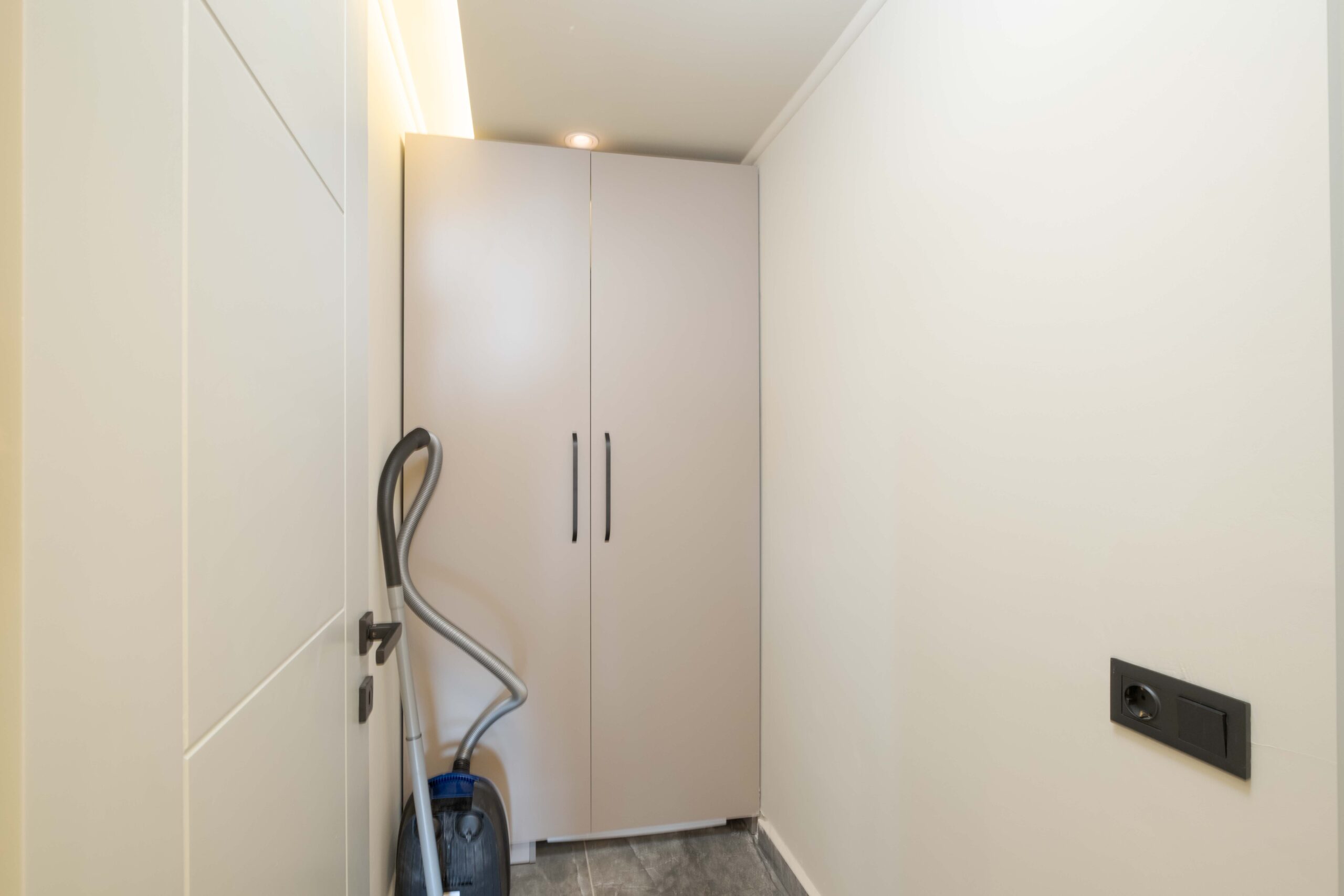 The modern American-style kitchen is fully equipped for a self-catering stay, including refrigerator, dishwasher, washing machine, oven, built-in hob, microwave, coffee machine and a full six-person dinner set. Everything needed for an effortless holiday has been thoughtfully provided.