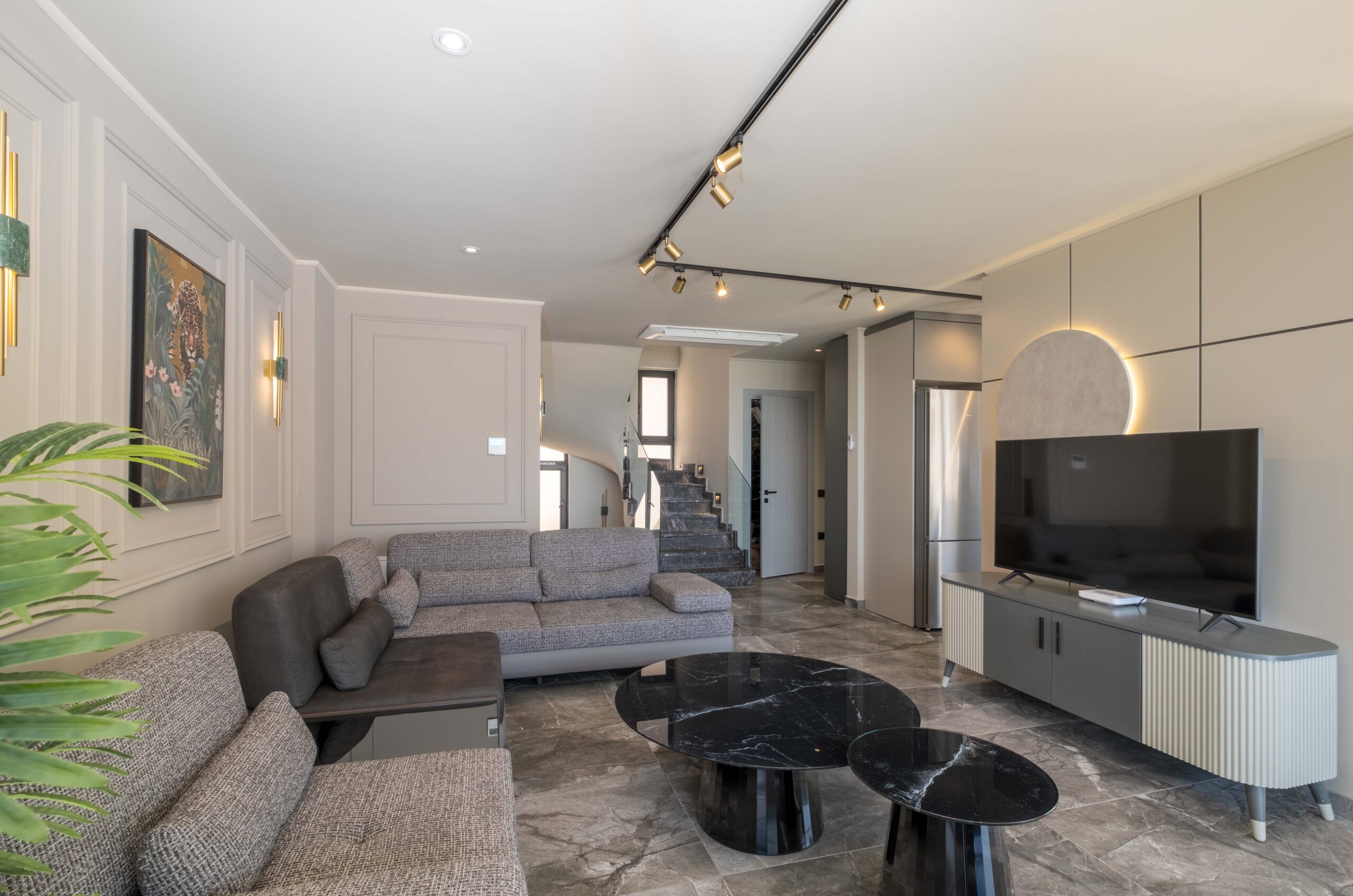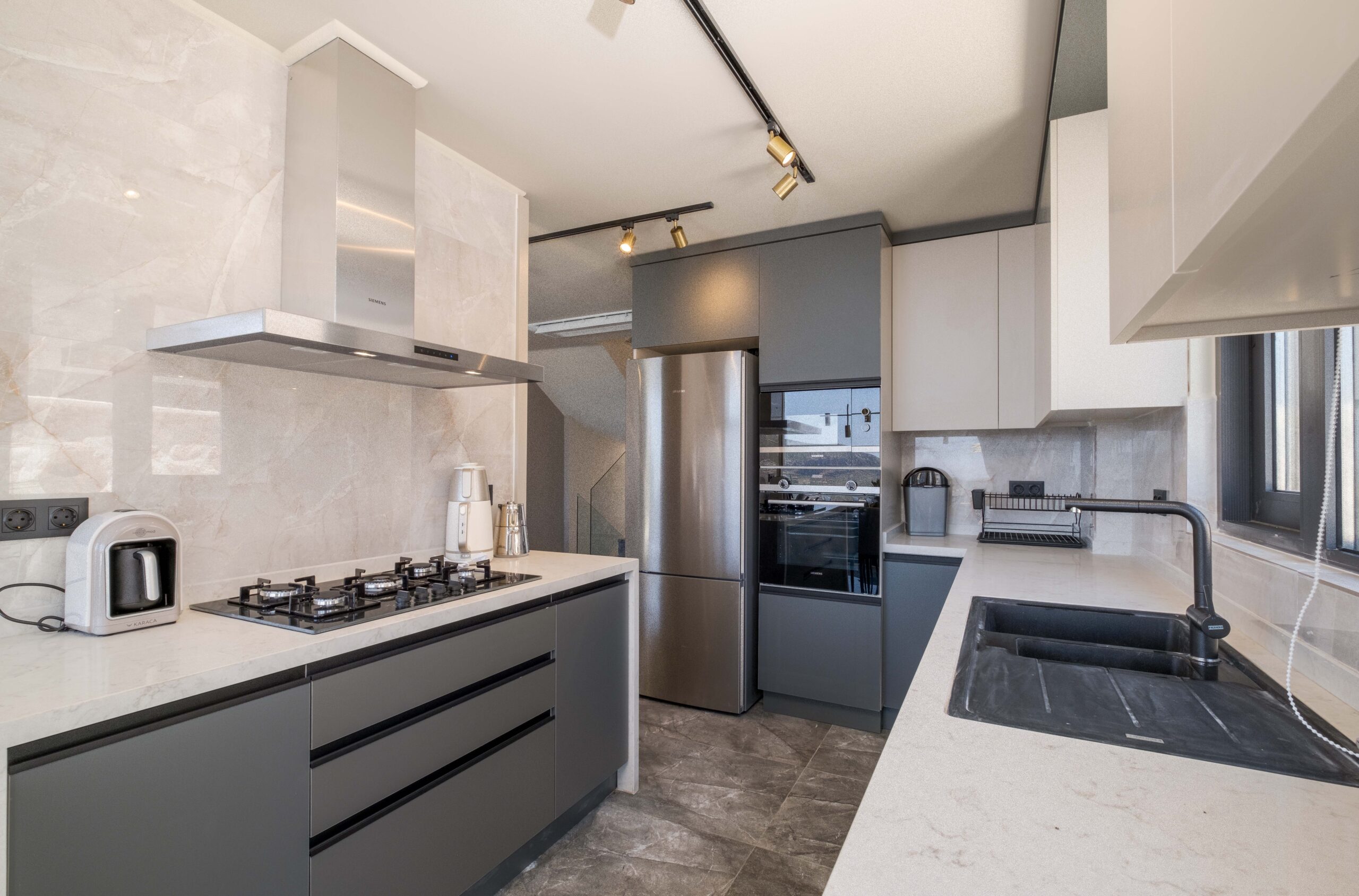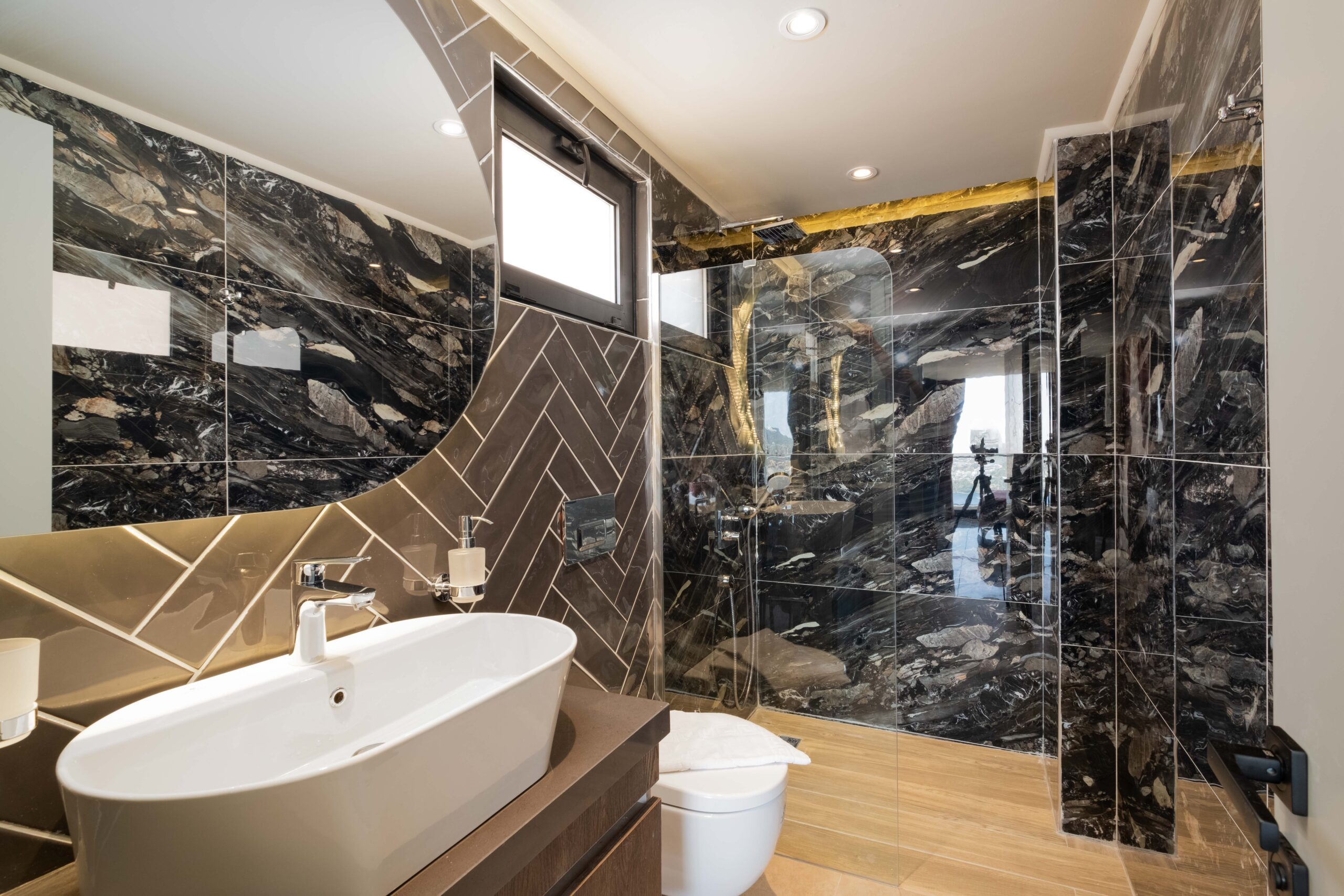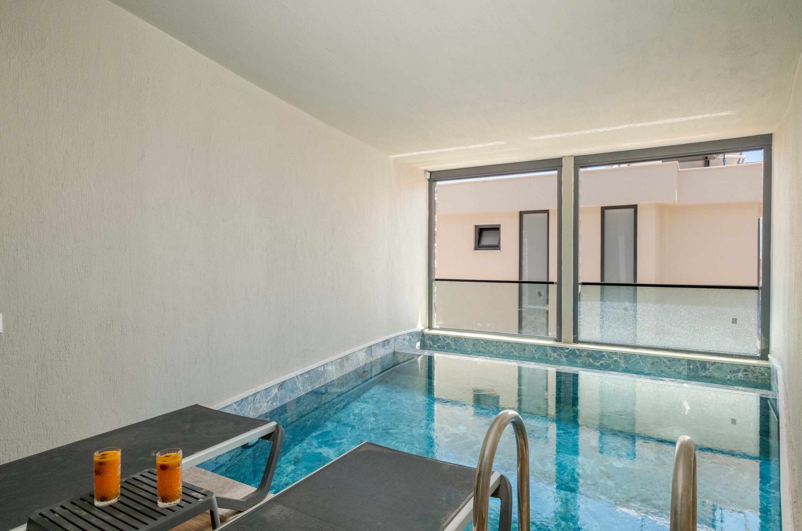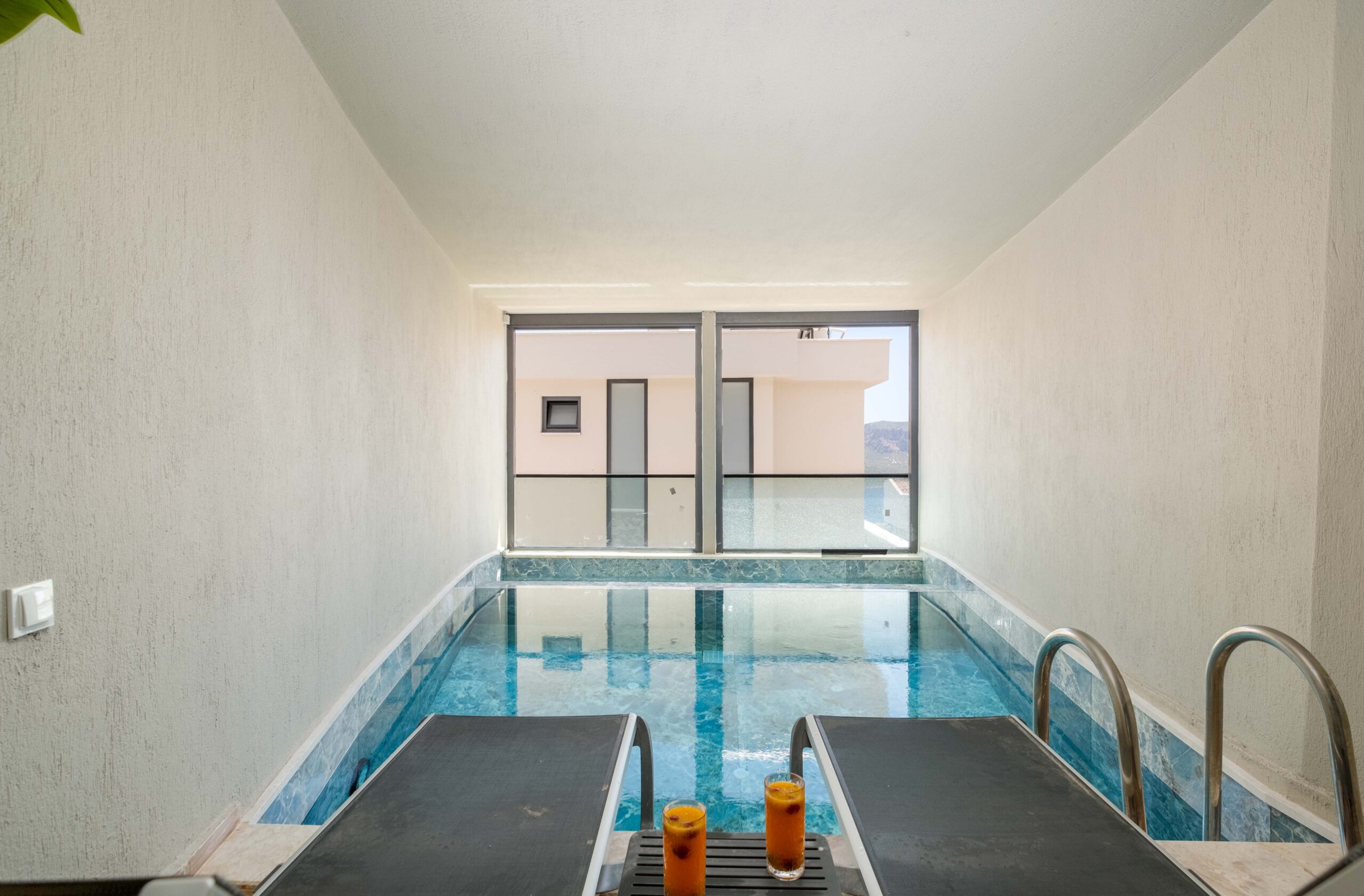 On the lower floor, Villa Casa Sirius offers an impressive private wellness and entertainment space. Guests can unwind in the sauna or traditional Turkish bath before cooling off in the indoor pool (4m x 6m, depth 1m).