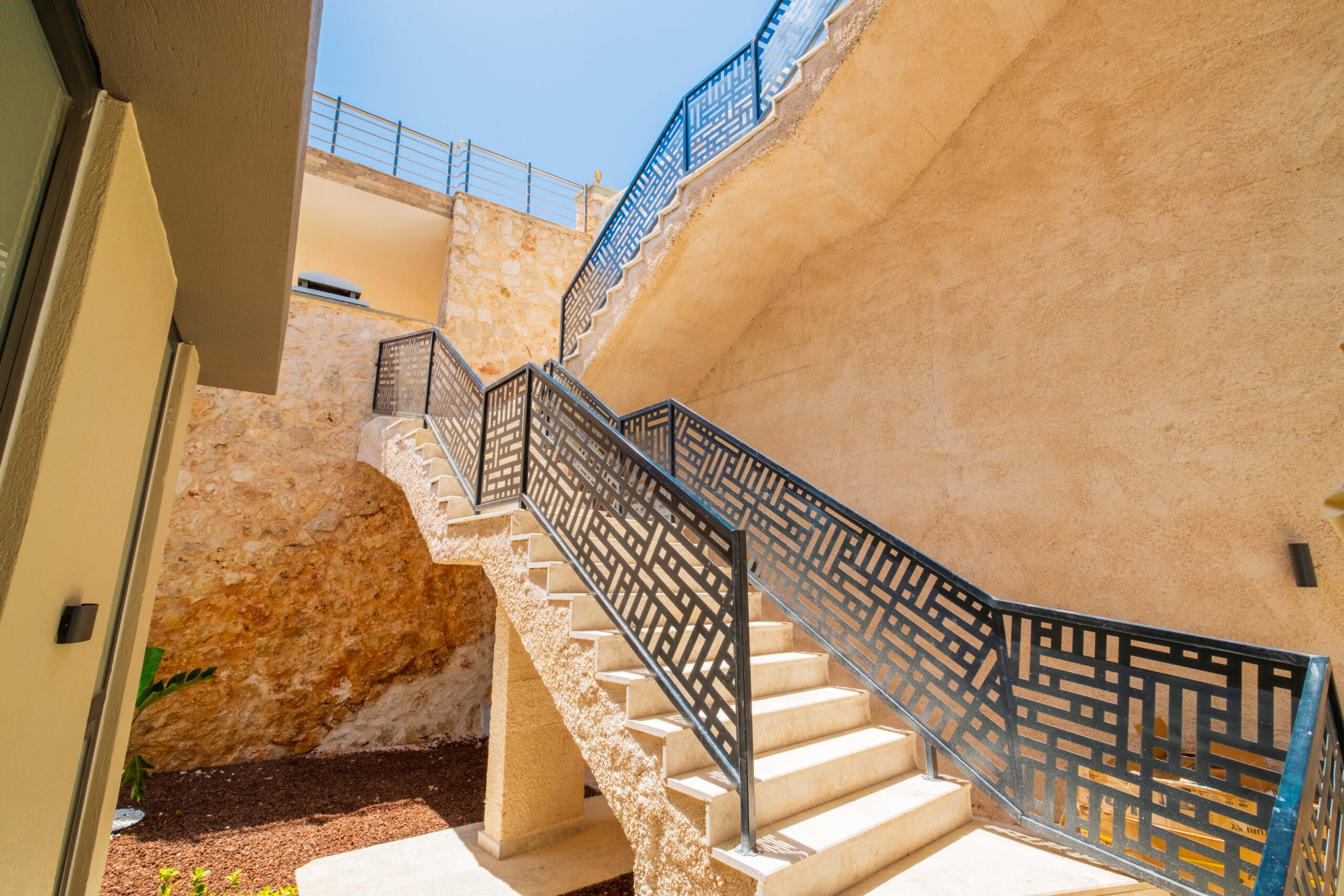 A comfortable seating area, swing and shaded spots provide flexibility throughout the day, while the BBQ and al-fresco dining space invite leisurely evening meals with views across Kalkan’s bays. An outdoor shower and private garden complete the space, offering comfort and convenience in equal measure.