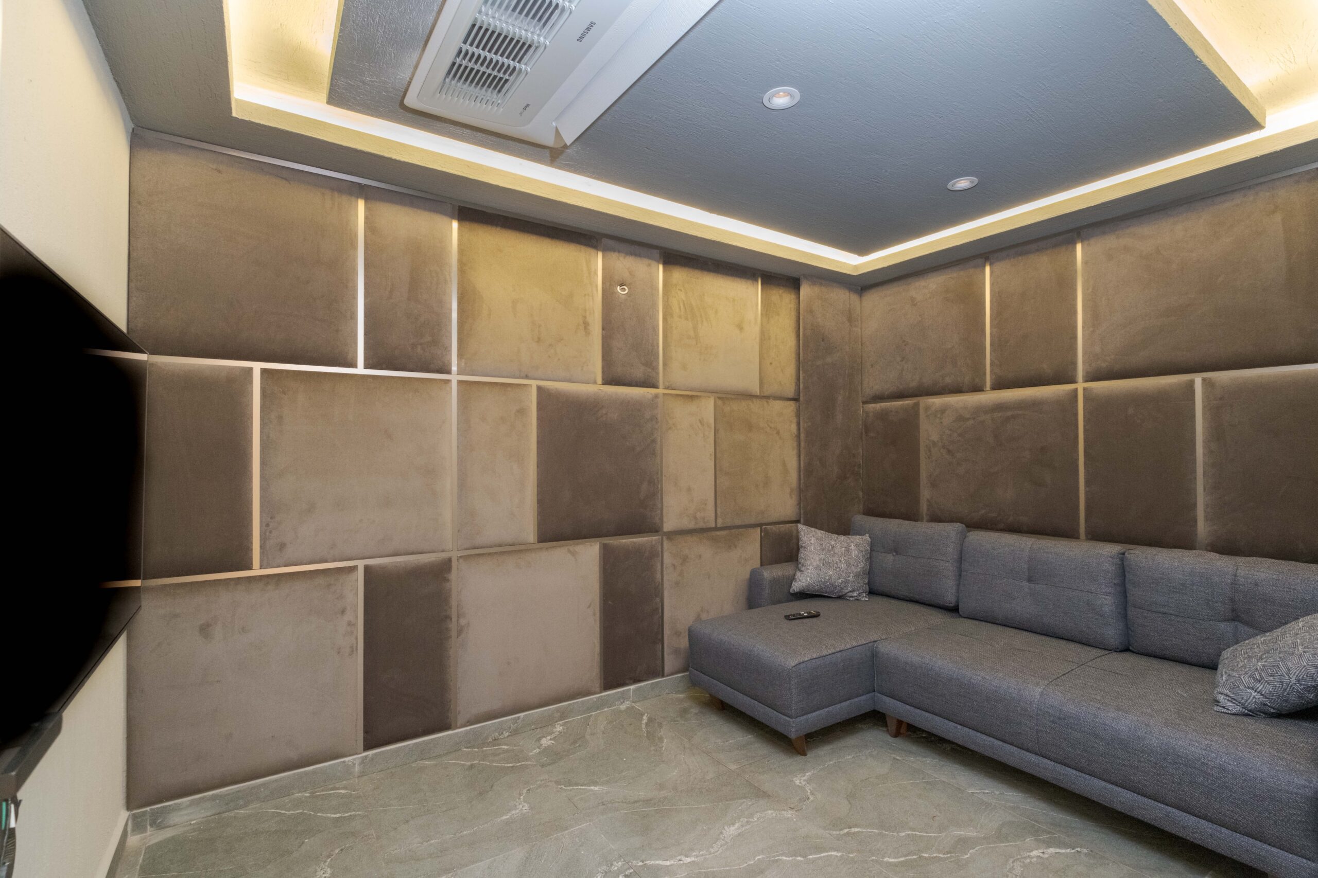 The private cinema room adds another layer of enjoyment, offering a cosy retreat for film nights — ideal for cooler evenings or simply relaxing after a day exploring Kalkan.