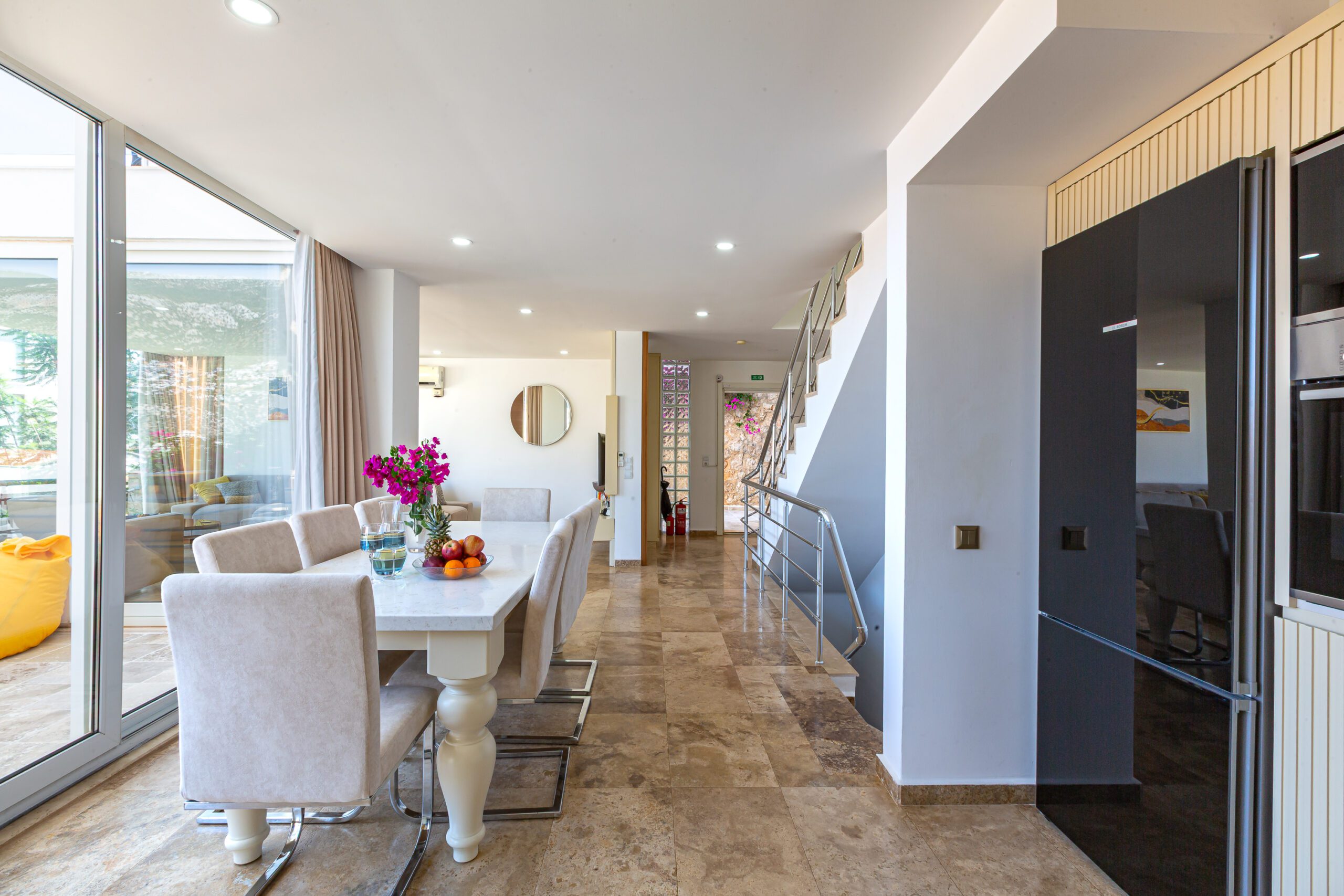 Leading from the main terrace you enter the well equipped kitchen fitted with modern appliances. Another dining area here accommodates 8 people.