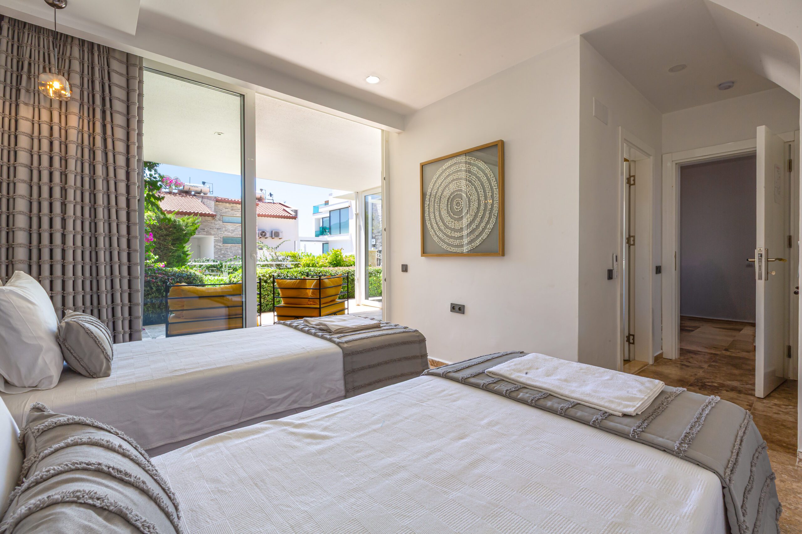 - Bedroom 4 – Twin beds, (can be made as double), shared terrace and ensuite with a walk-in shower.