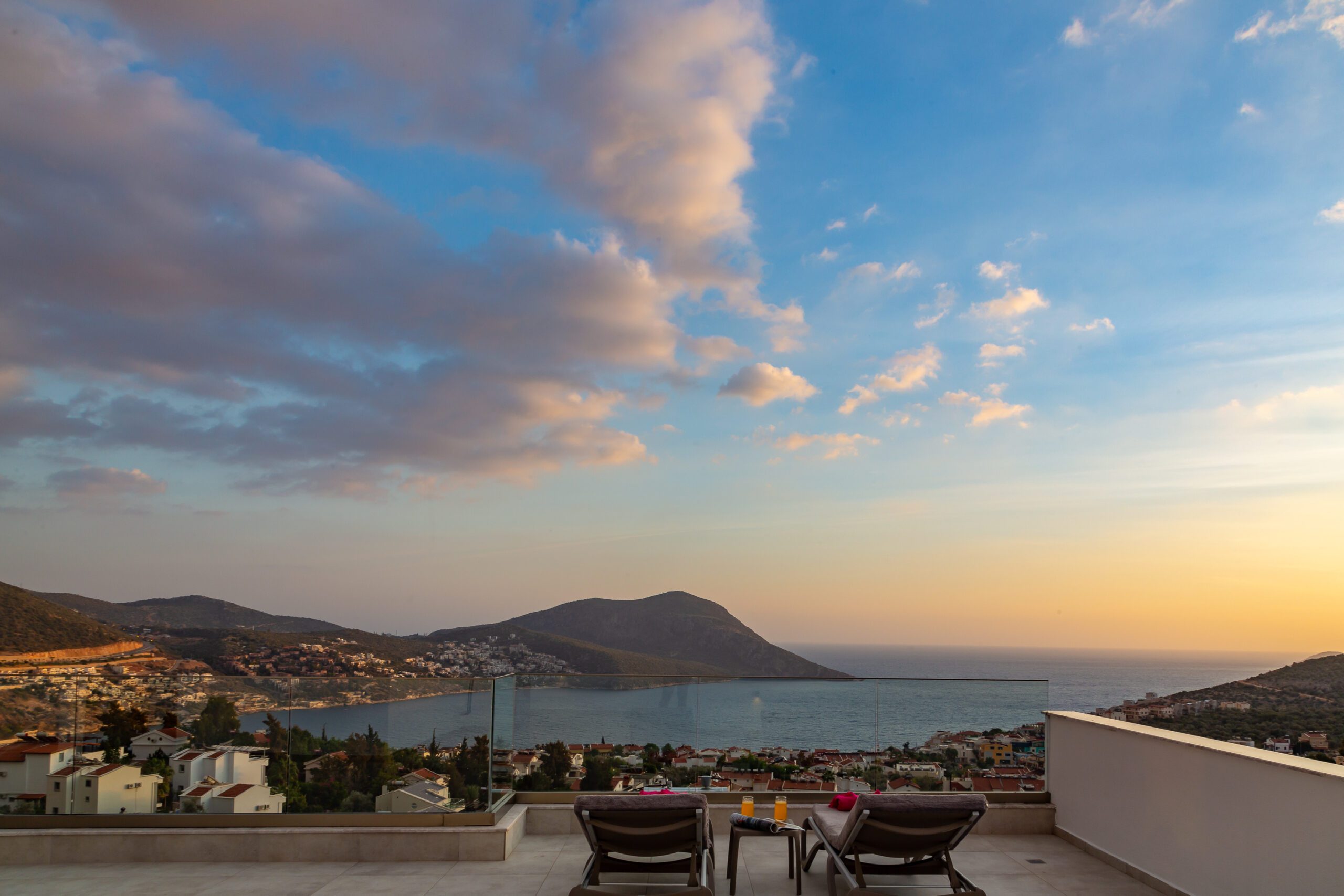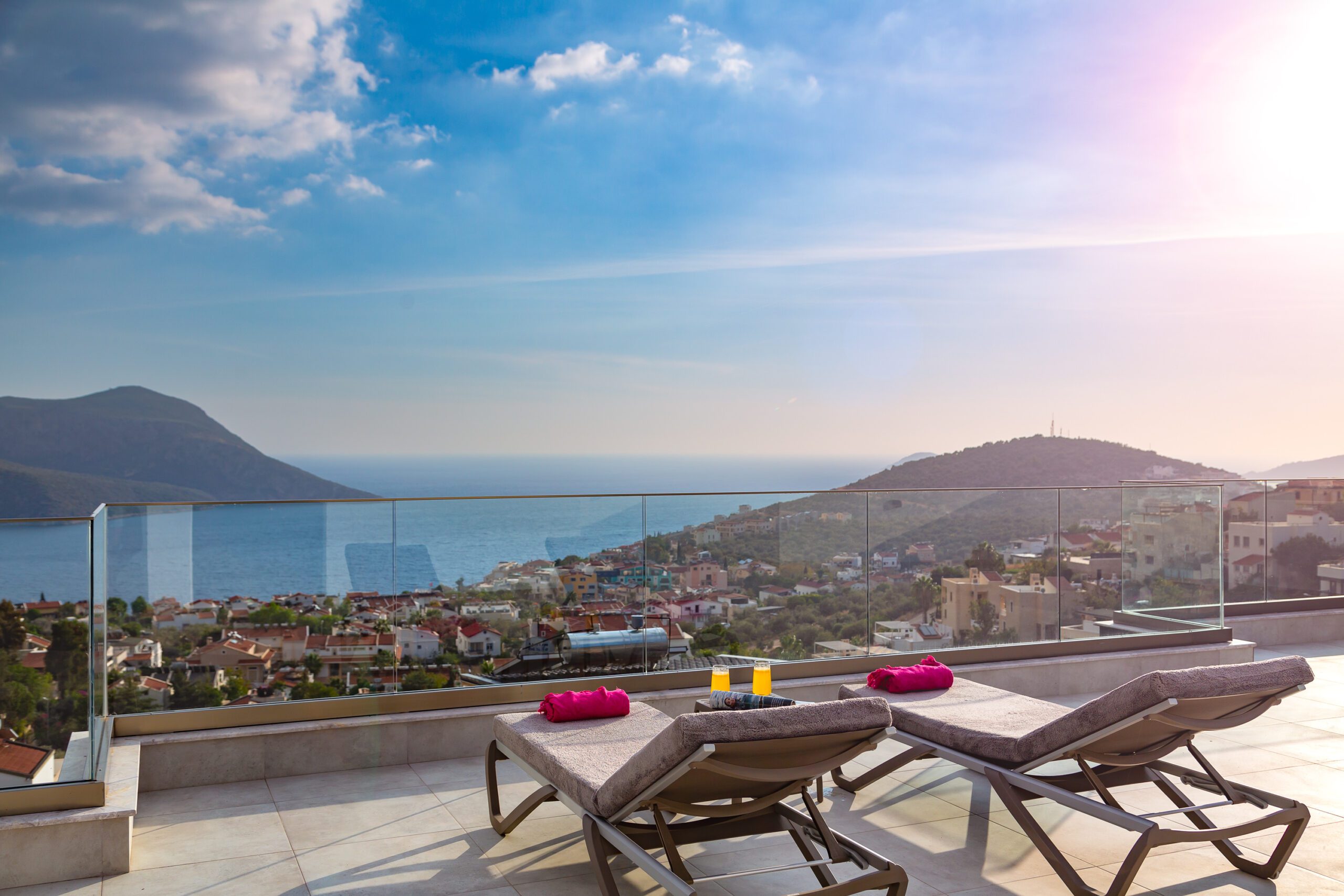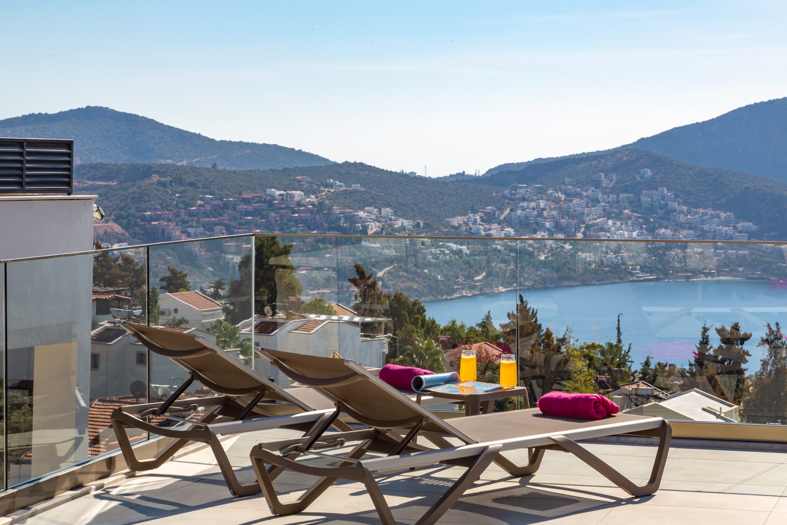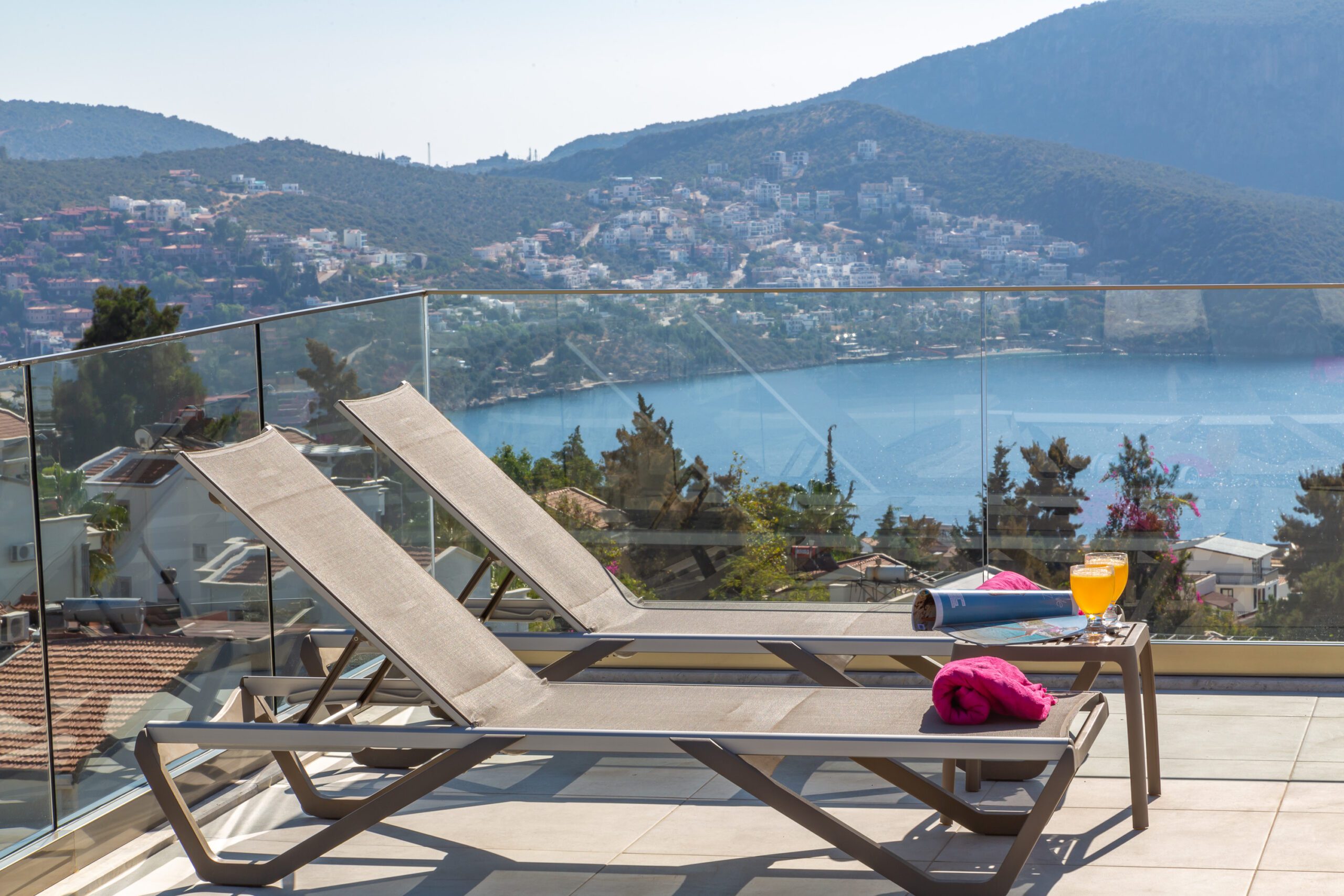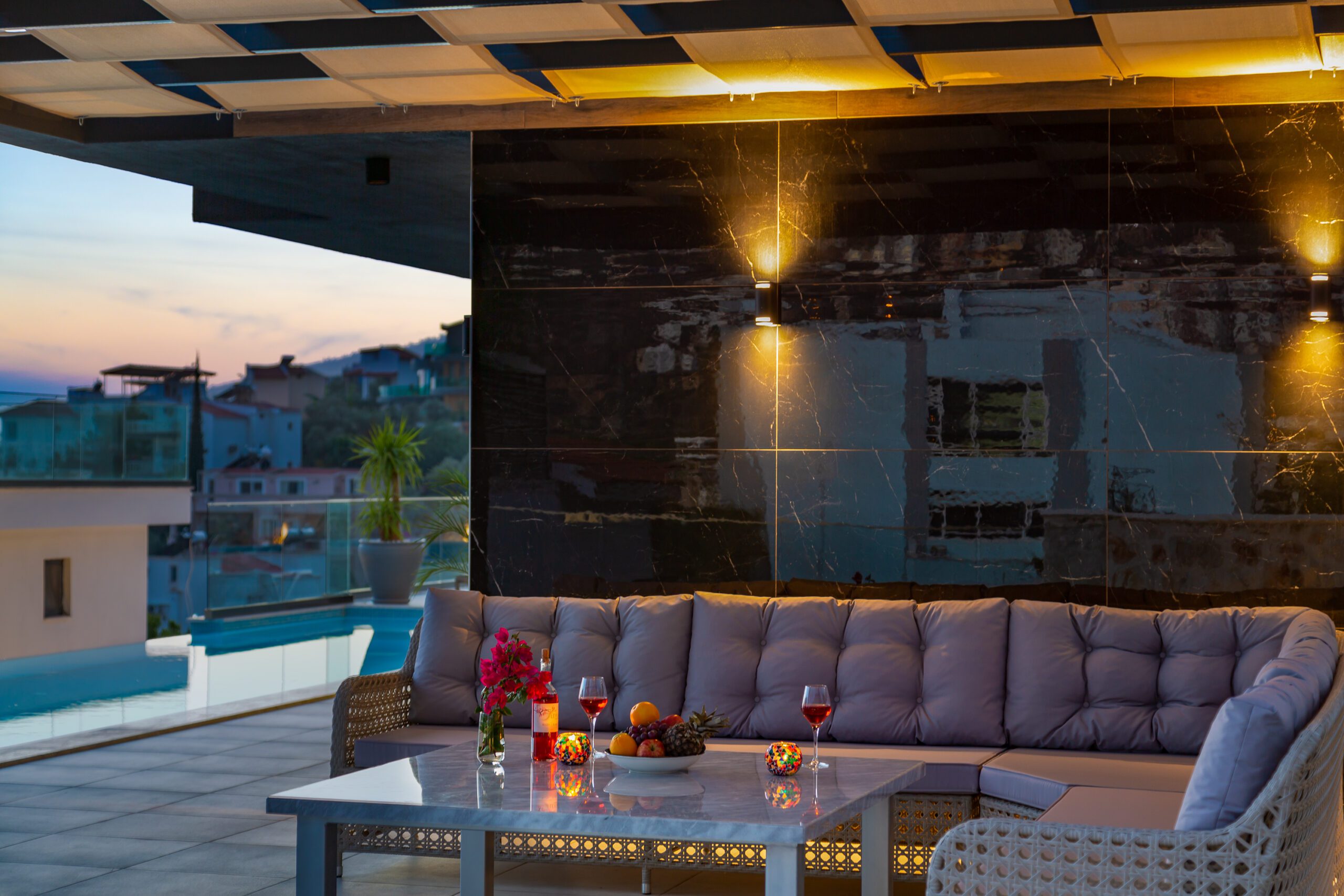 The large roof terrace offers one of the most impressive vantage points in the villa. With panoramic views across Kalkan Bay and the surrounding mountains, this space is ideal for sunset drinks, evening relaxation, or simply taking in the changing colours of the landscape throughout the day. Guests often return here again and again to enjoy the ever-changing views.