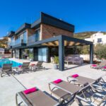 The outdoor spaces at Villa Dorgeo are a true highlight. A large private infinity swimming pool with a shallow end takes centre stage, (pool is 14 m length with 2.5 m being shallow) it offers magnificent views and a perfect spot for cooling off during the day. The pool area is immaculately maintained and surrounded by high-quality, exceptionally comfortable sun loungers.