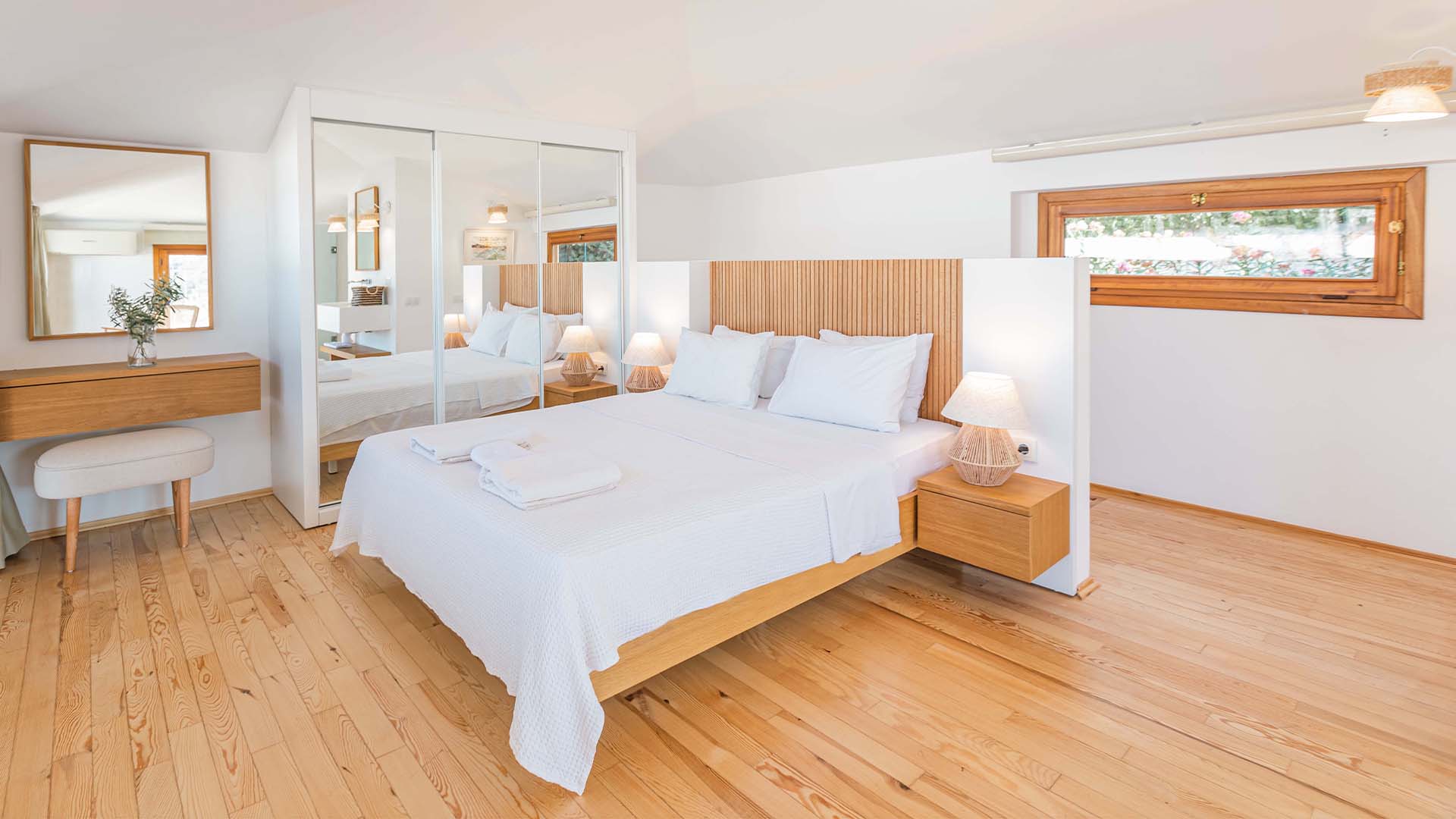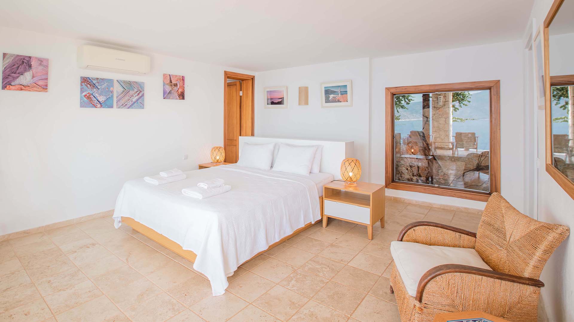 Bedroom 2 – has an exposed rock feature and is accesssed from the ground floor terrace. Sea views.