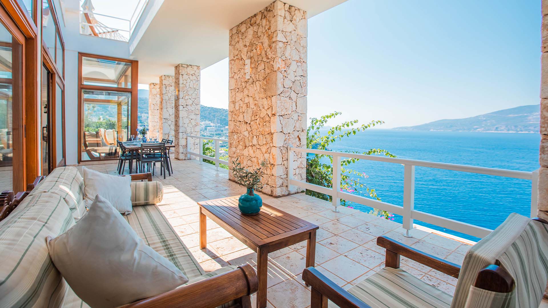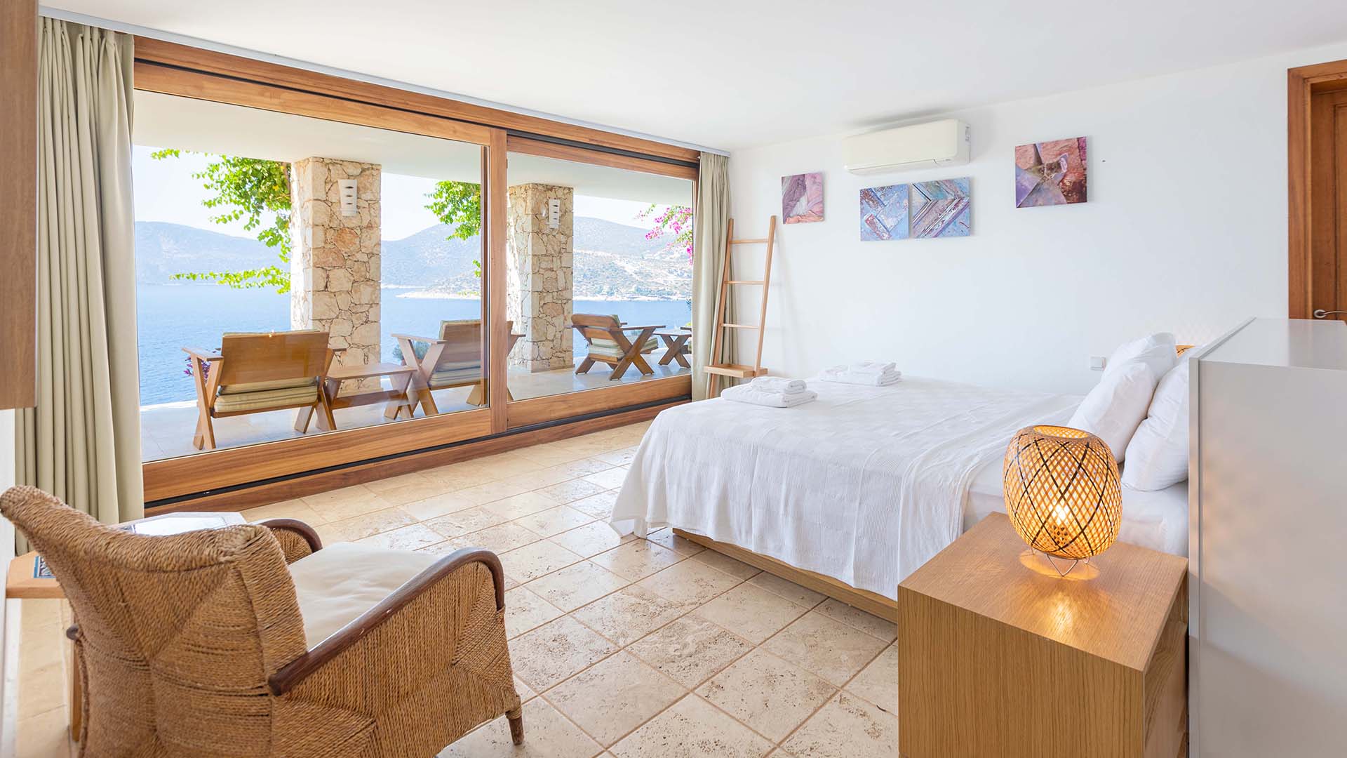 - Uninterrupted sunset views with floor-to-ceiling windows and private terraces overlooking Kalkan Bay.