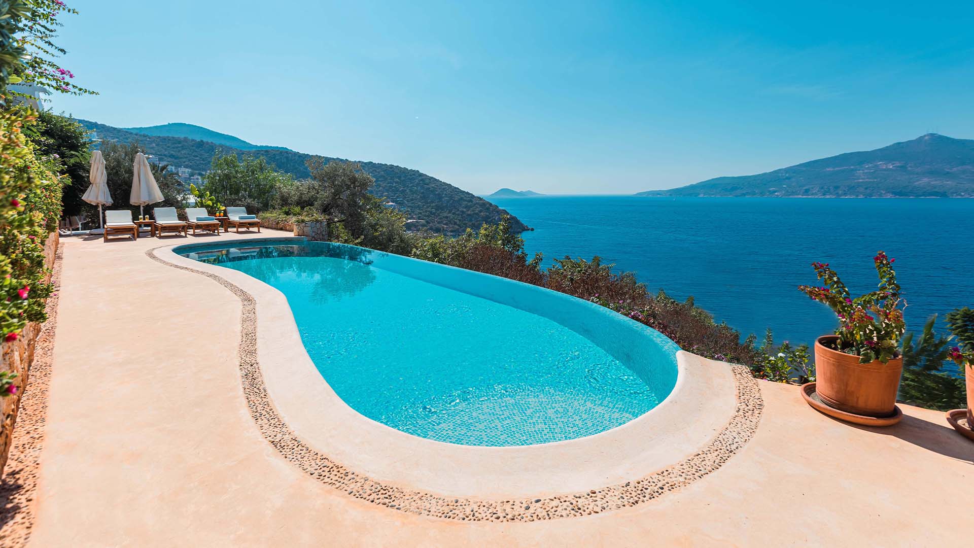 A private villa in Turkey with an infinity pool and hotel services – a rare and relaxing combination.