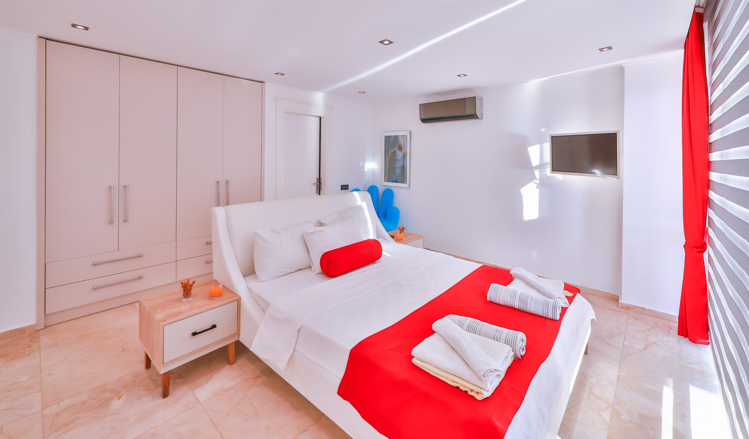 The expansive roof terrace is a true highlight of Villa Marvellous. Furnished with sun loungers and a dining table, it offers panoramic views across Kalkan Bay and the surrounding mountains. A large Jacuzzi provides the ultimate spot to unwind while watching the sun set over the Mediterranean.