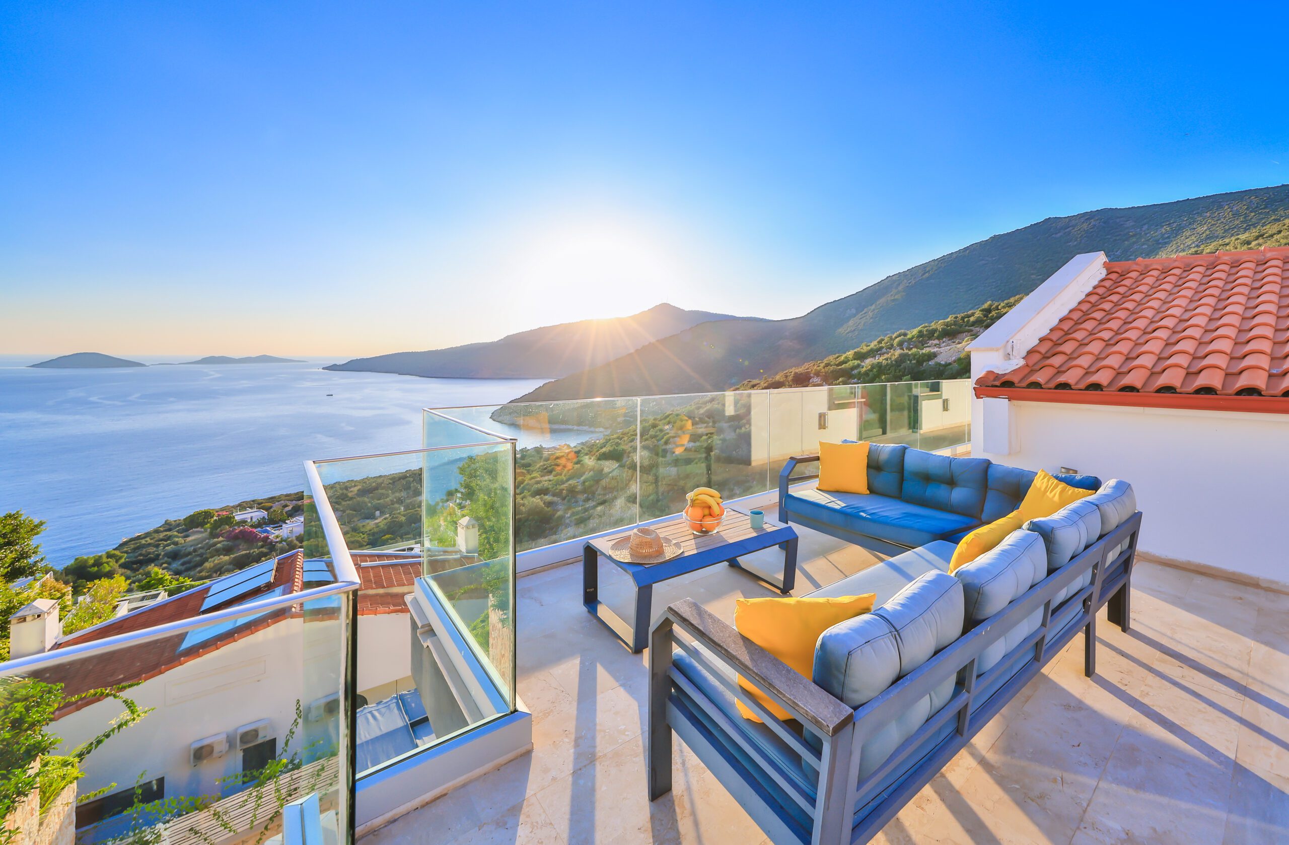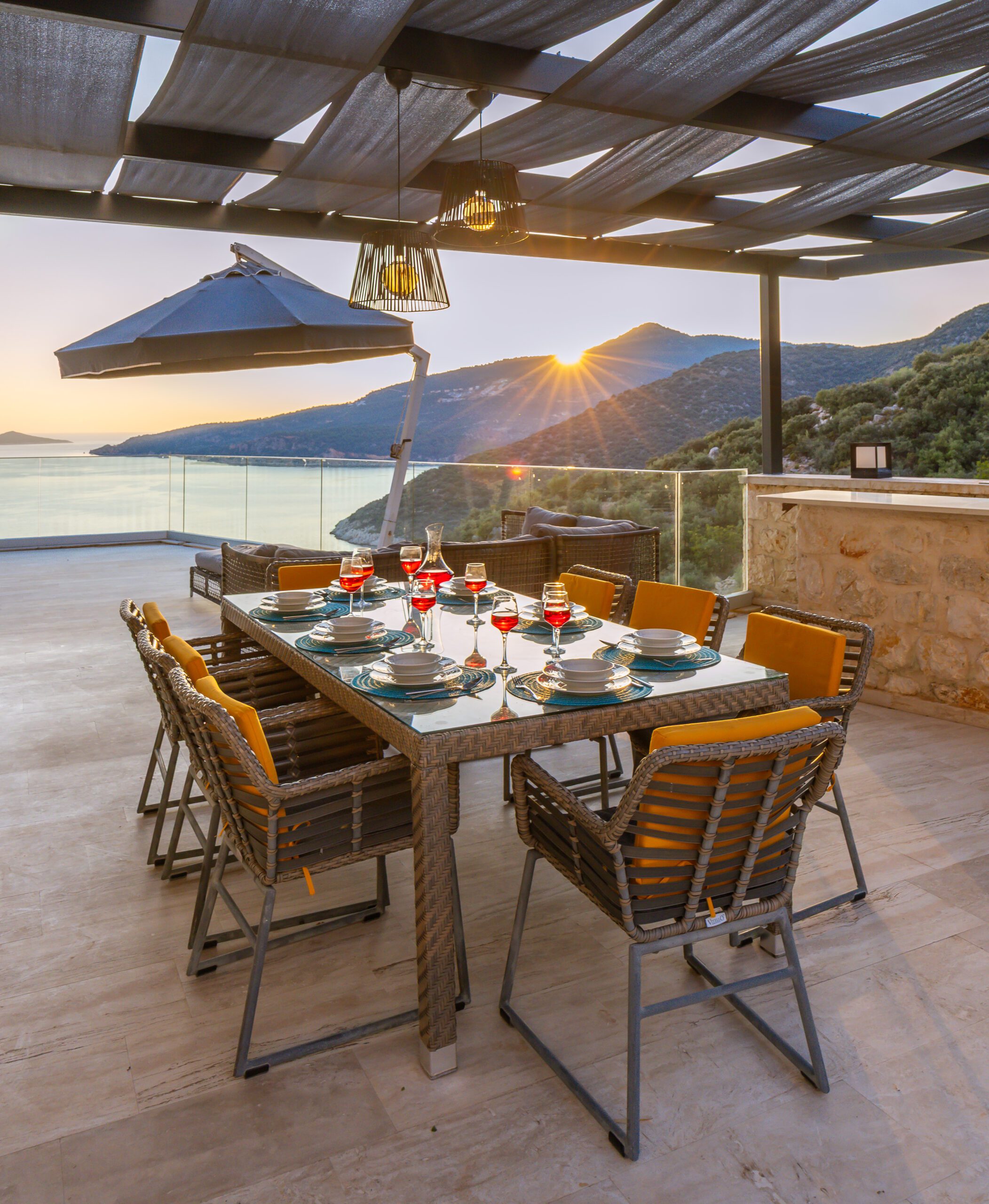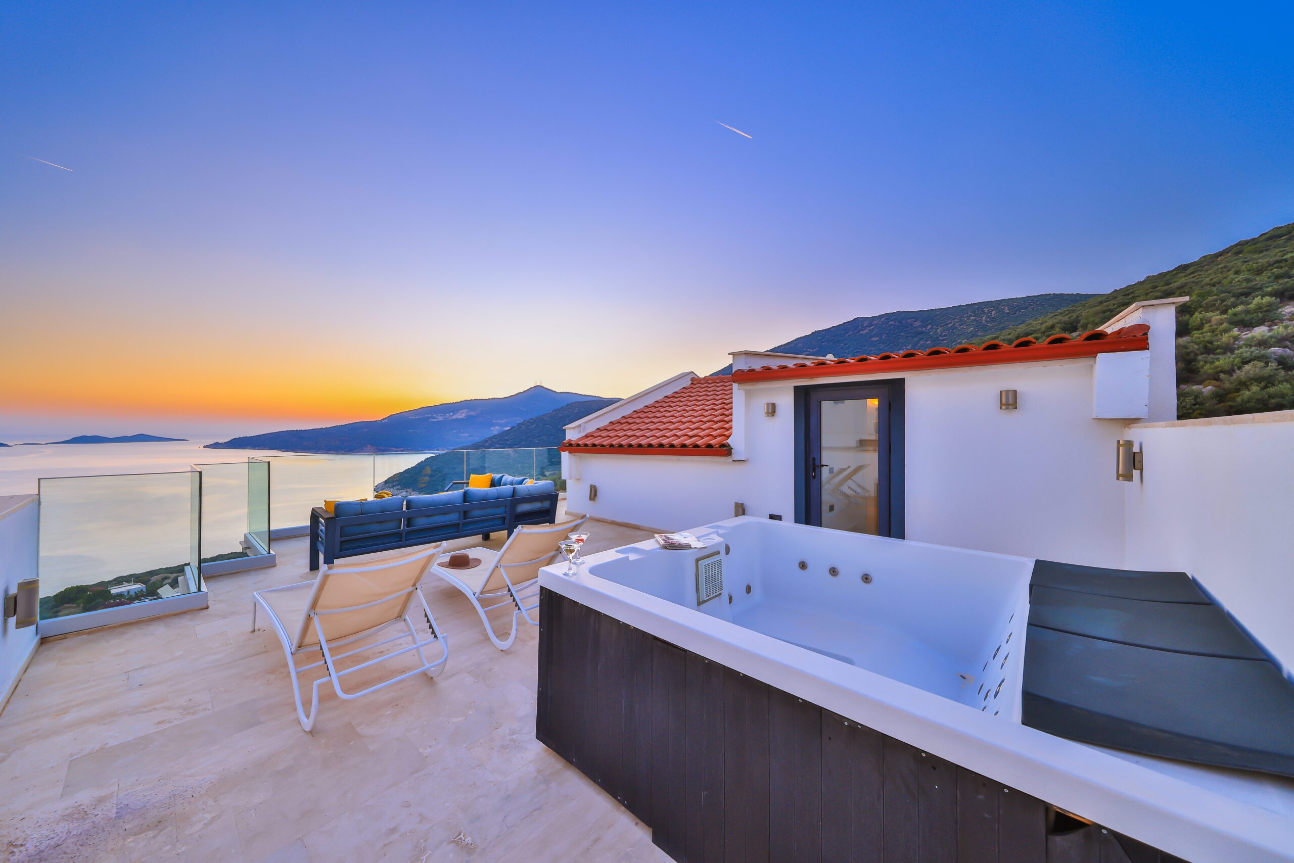 The expansive roof terrace is a true highlight of Villa Marvellous. Furnished with sun loungers and a dining table, it offers panoramic views across Kalkan and Kalamar Bays and the surrounding mountains. A large Jacuzzi provides the ultimate spot to unwind while watching the sun set over the Mediterranean.
