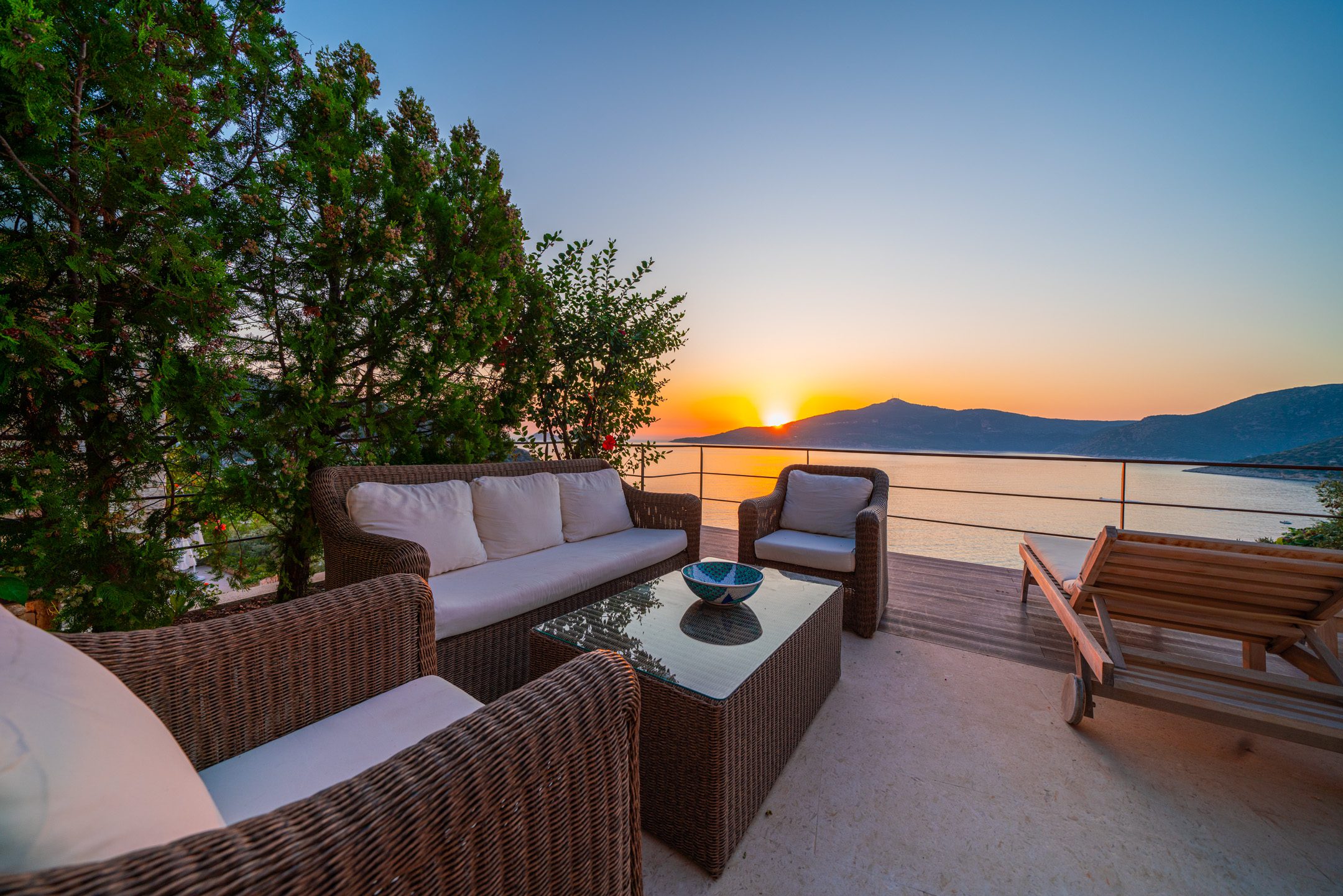 • Uninterrupted sunset views with floor-to-ceiling windows and private terraces overlooking Kalkan Bay.