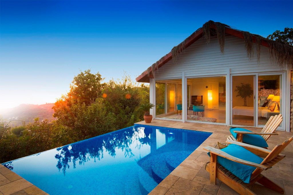 Villa Salkım Evi is a one-bedroom honeymoon villa for two, located in the Islamlar area of Kalkan, designed to provide a private, peaceful retreat immersed in nature. Thoughtfully created to meet all your holiday needs, the villa features a Jacuzzi and provides a romantic setting ideal for couples.