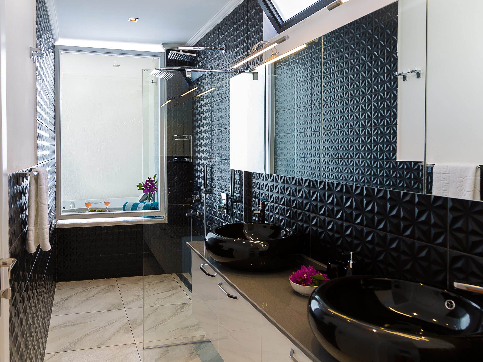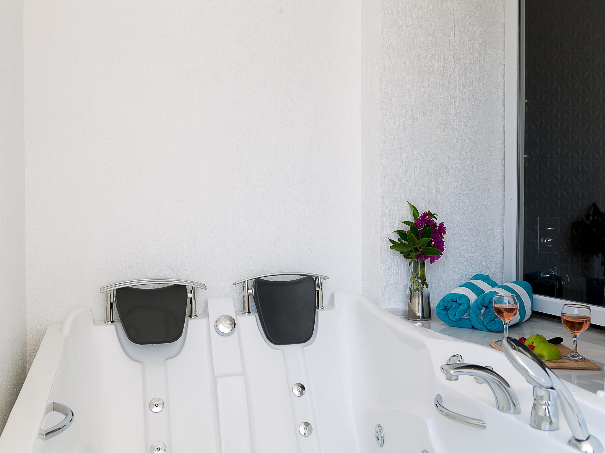 The expansive terrace is a standout feature of Villa Seascape. The private pool (approx. 9.5m x 3.5m, 1.7m deep) with step access, includes an integrated jacuzzi, allowing you to relax as you soak up the spectacular views. The sun-drenched terrace is furnished with:
