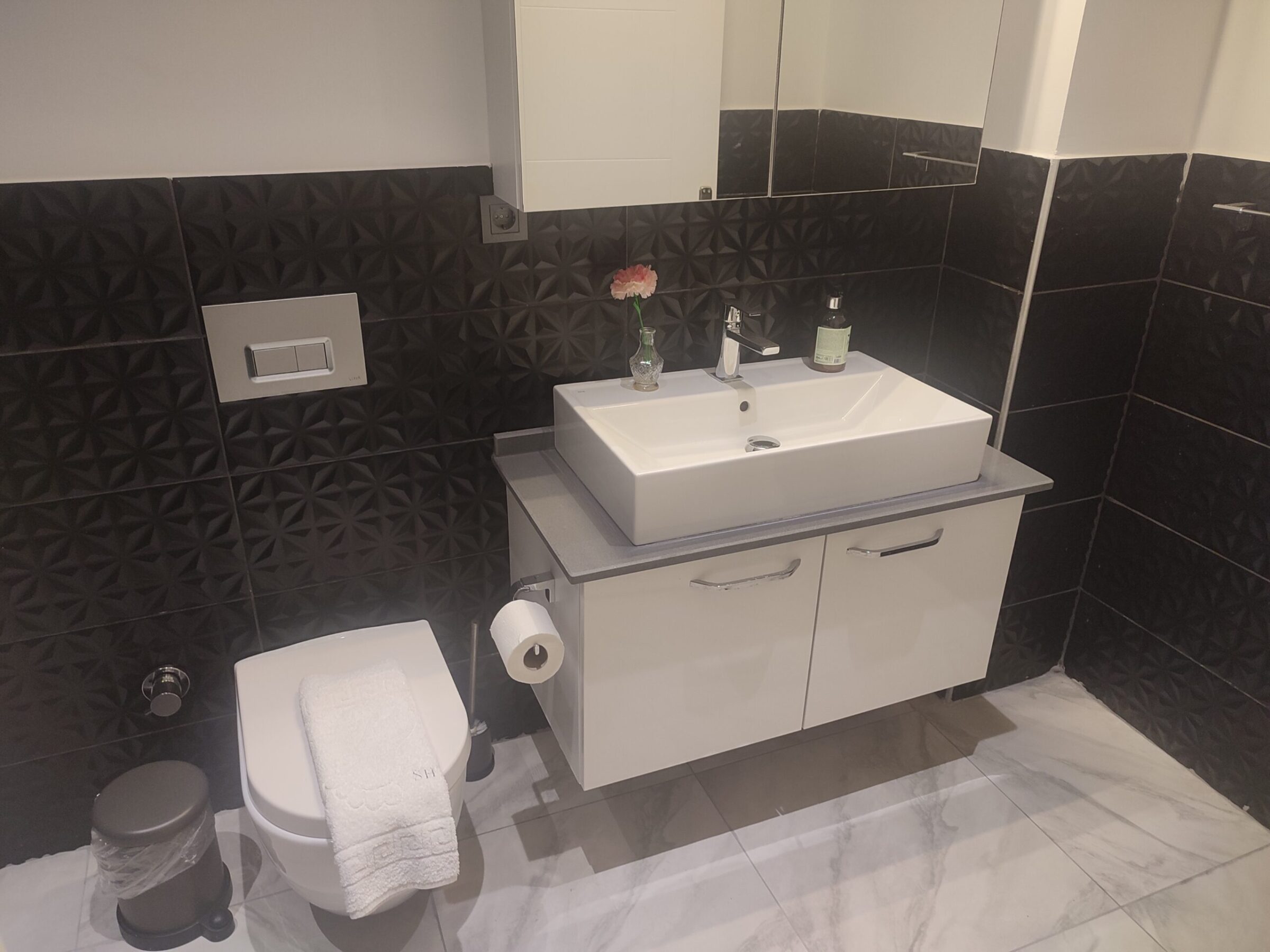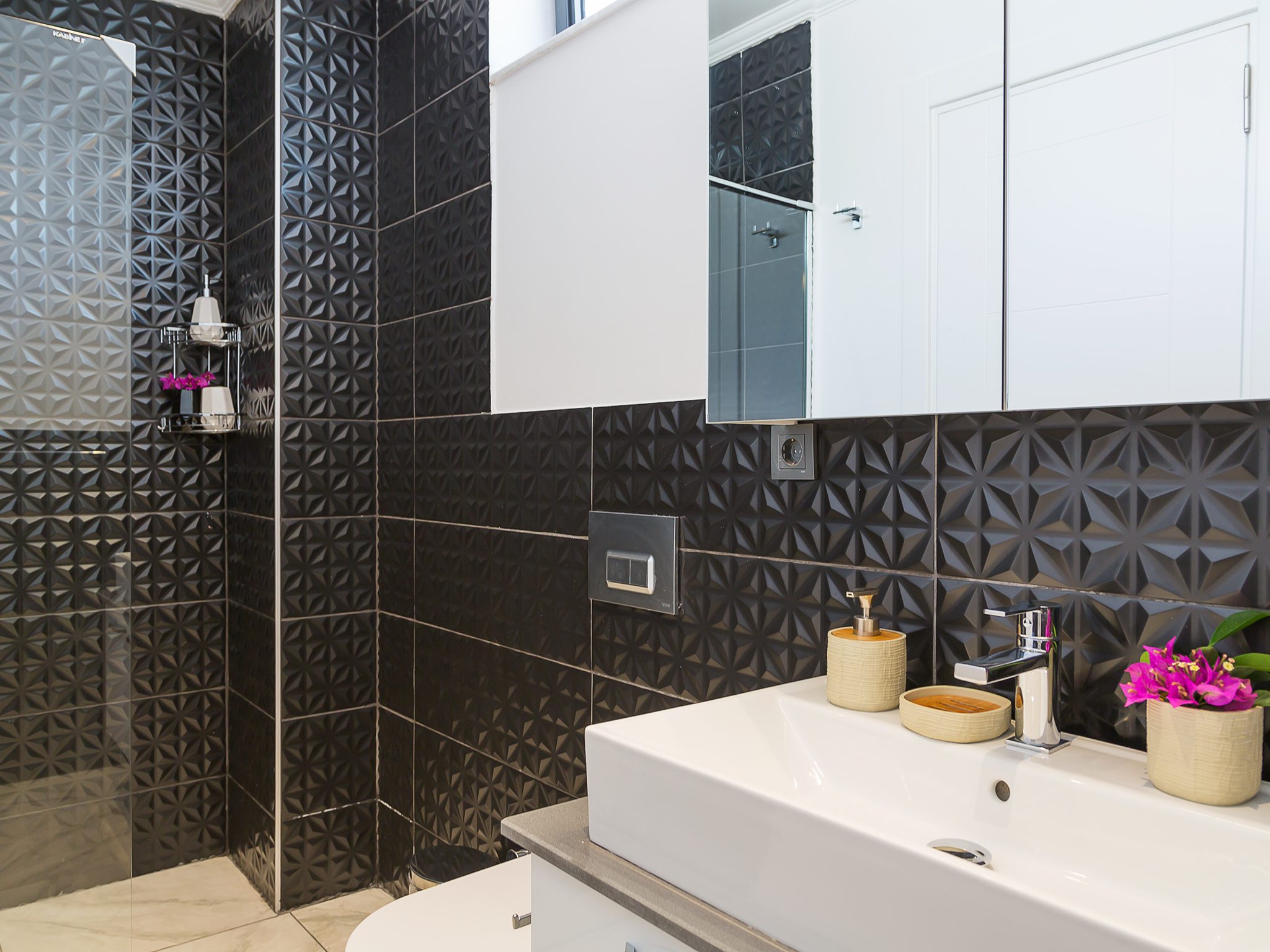 - First Floor: Two stylish double bedrooms with en-suite shower rooms and furnished sea view balconies.