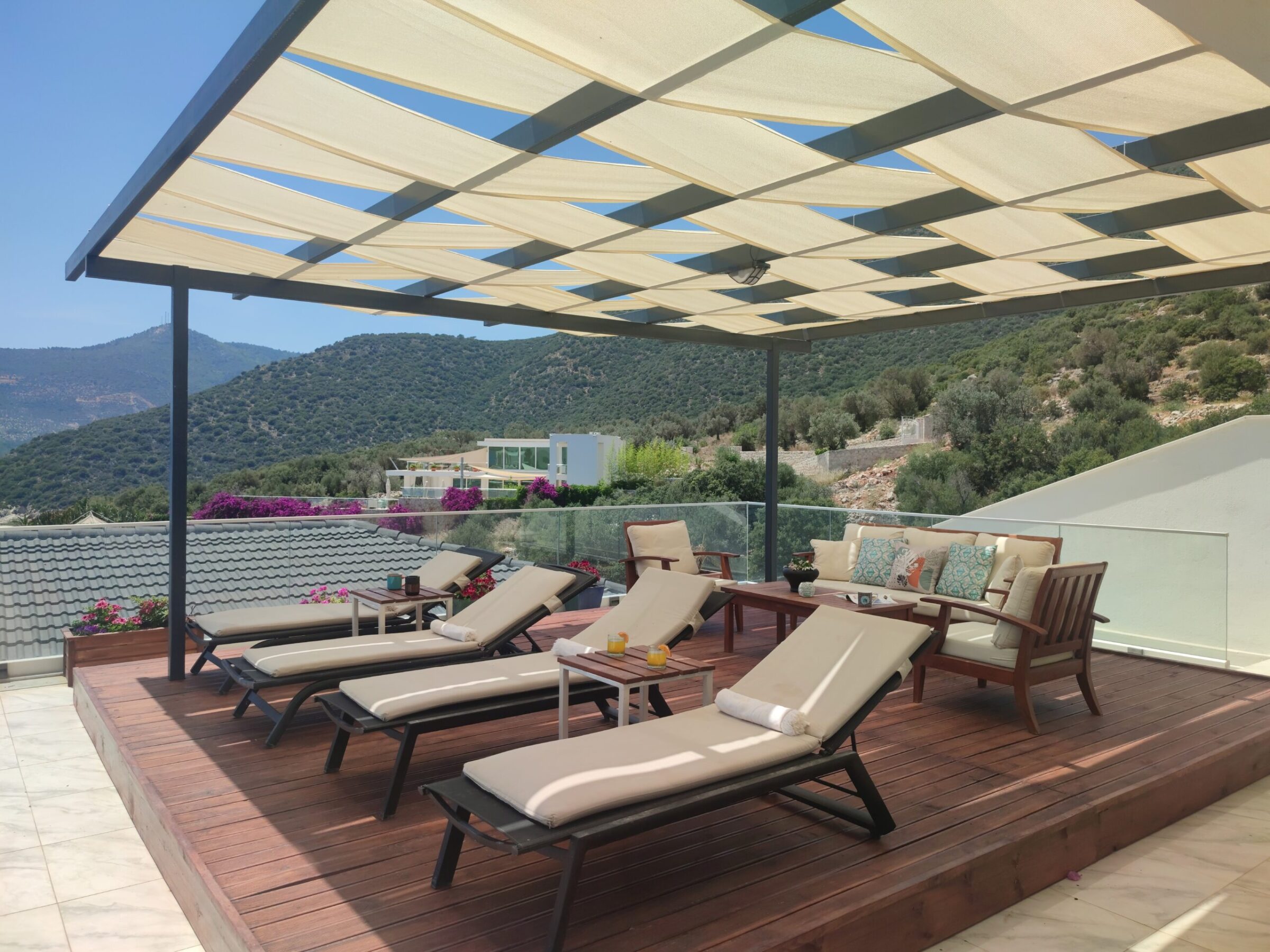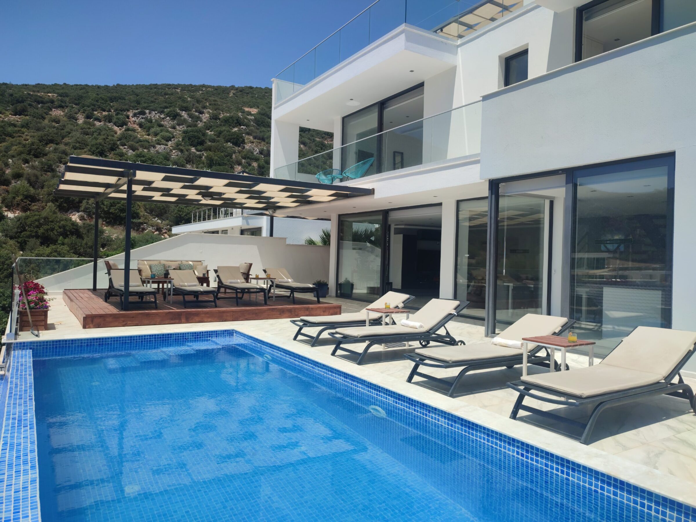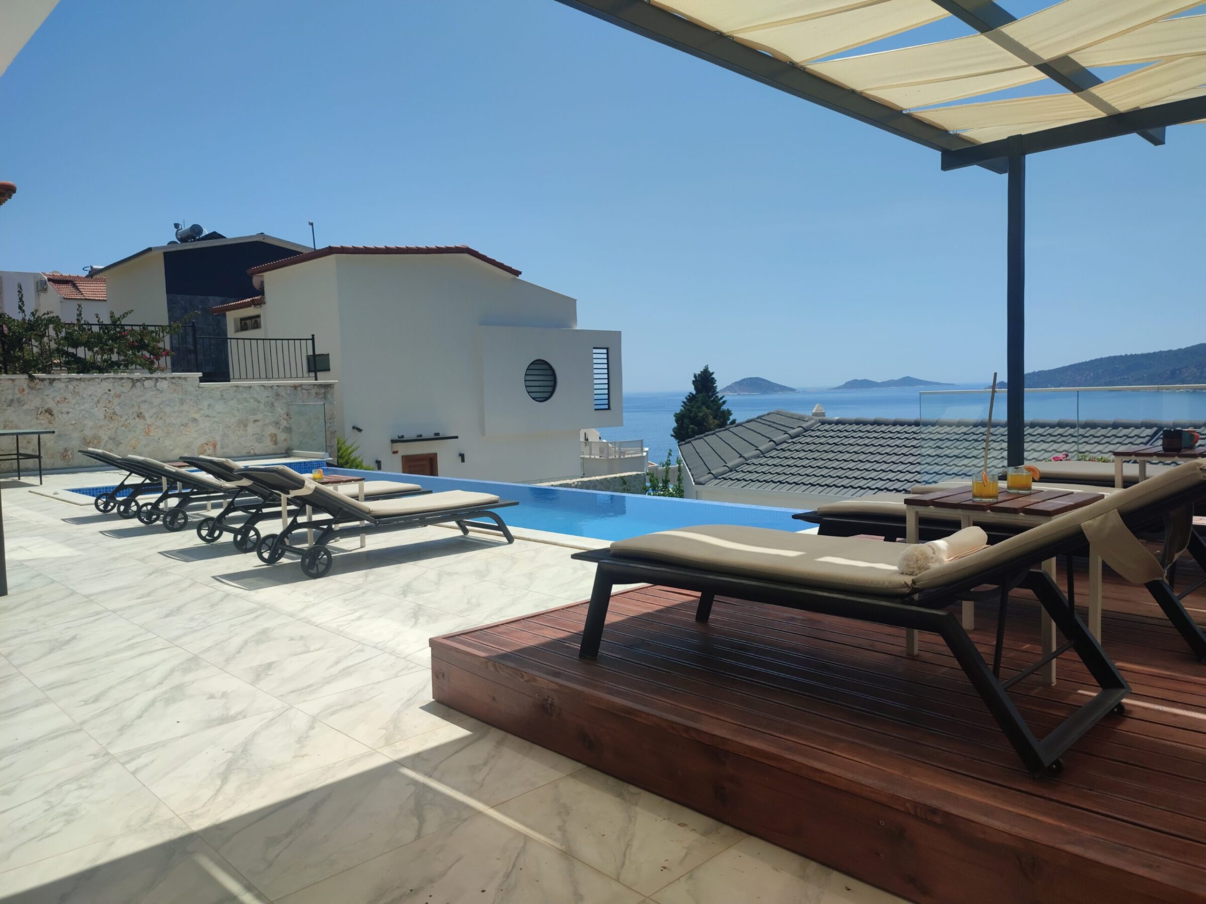 Villa Seascape is ideally positioned just a 10-minute stroll from Kalamar Beach Club, or 12–15 minutes’ from Lures Beach Club, and within close reach of popular local restaurants. The walk to Kalkan Old Town takes around 20–25 minutes, or a short taxi ride to the harbour, boutiques, and the rooftop dining scene.