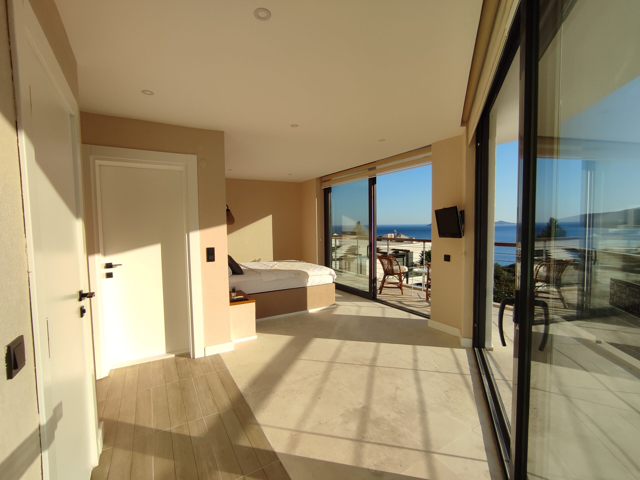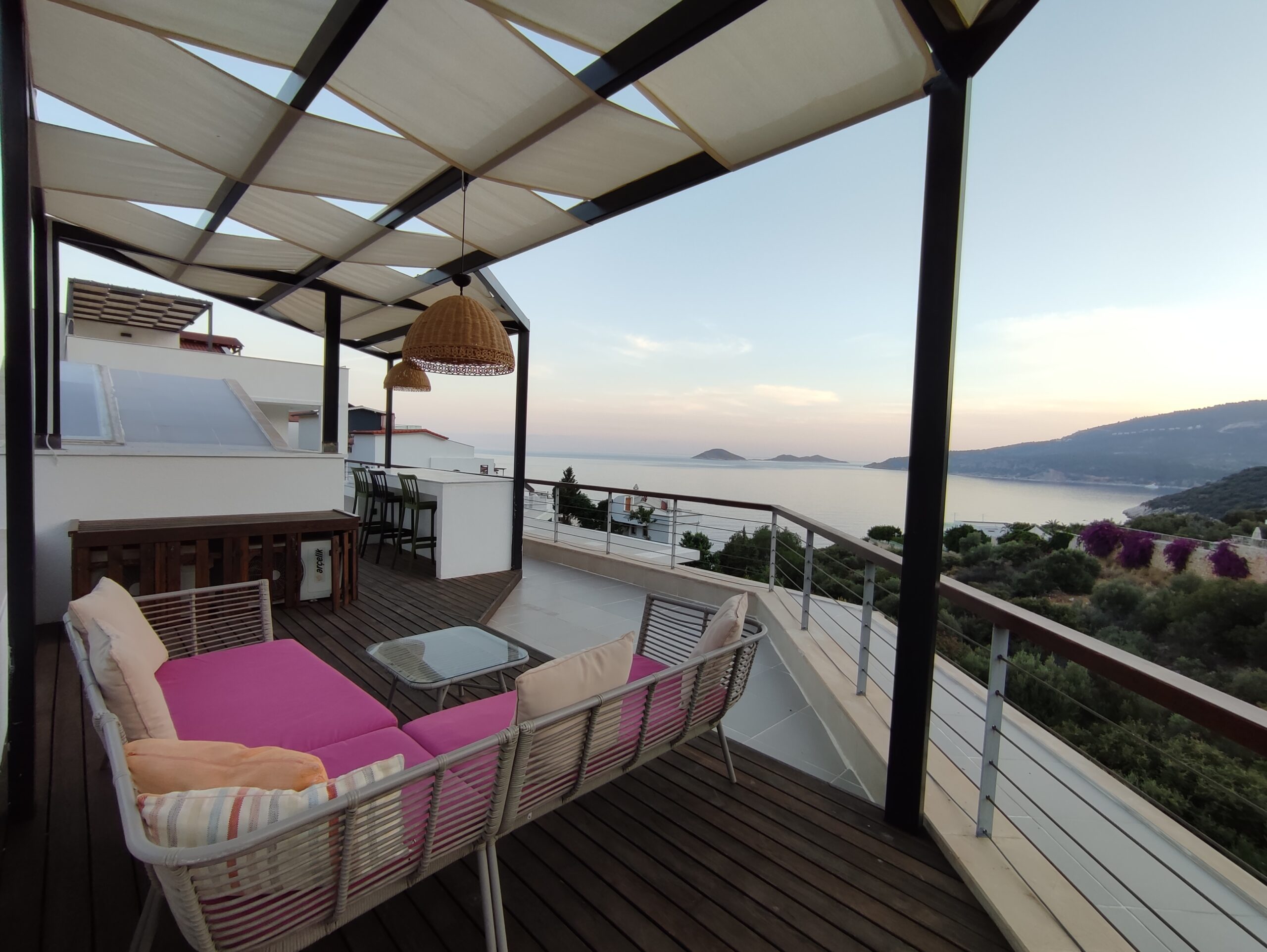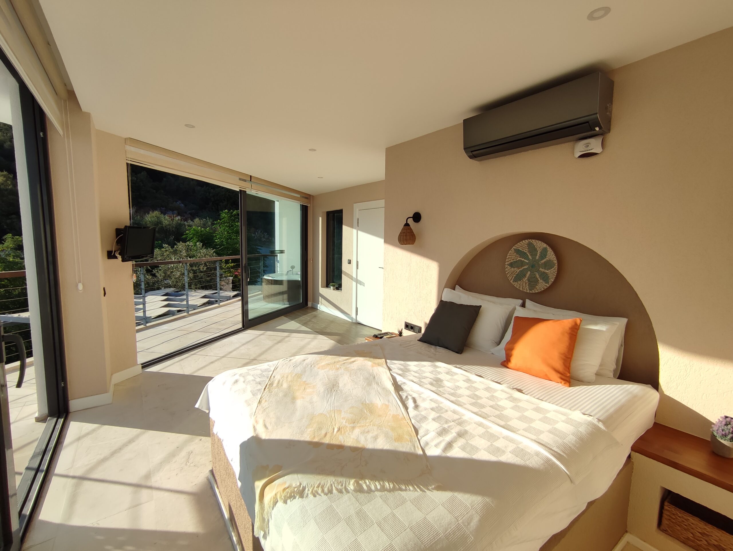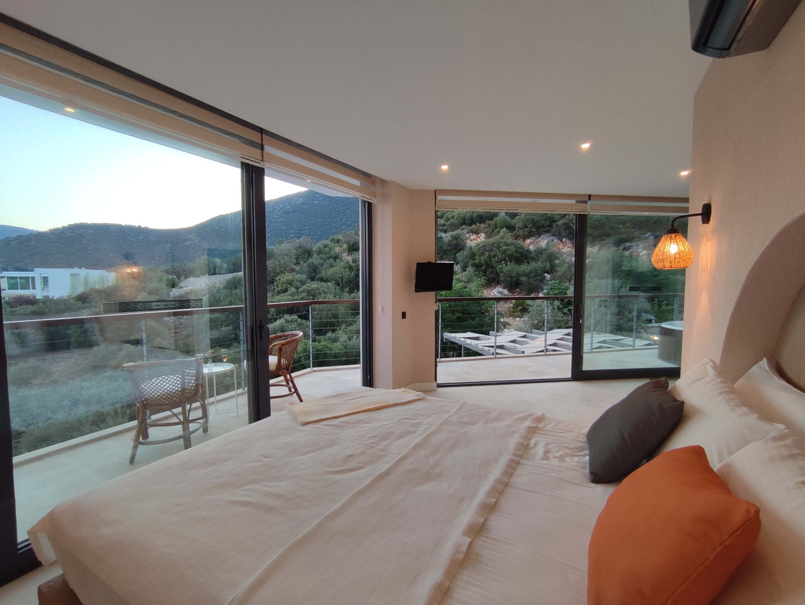 From its glass-fronted exterior to its furnished rooftop terrace, this villa offers a sophisticated coastal holiday within walking distance to Kalamar Beach Club, Lures Beach Club and just a short drive or taxi ride from the vibrant heart of Kalkan Old Town.
