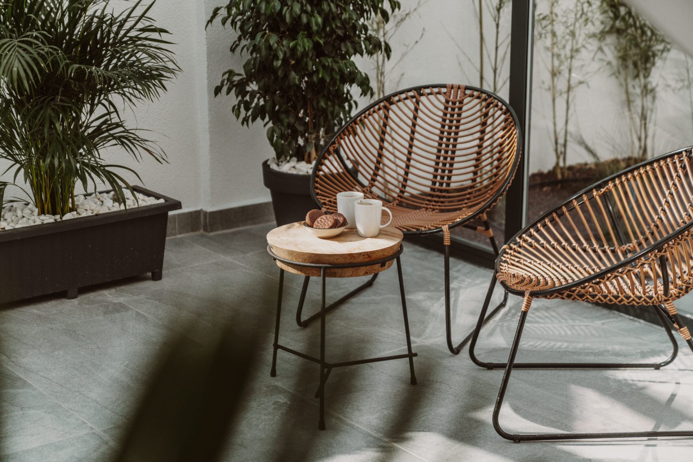 The terrace is furnished with:
